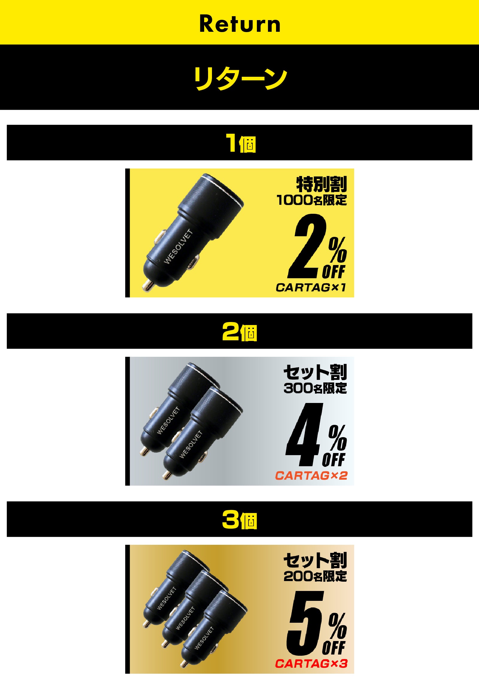 2025/11/07 21:00この度、弊社製品CarTagにつきまして本プロジェクトは終了しておりますが、その後応援購入のご希望をたくさん頂きました為、再び新規プロジェクトをCAMPFIREにて開始することと致しました。以下にURLとリターン内容などをご案内させて頂きます。リターン内容につきましては今回のプロジェクトと同様のものに加えて、複数個をご購入頂けるグループ割というコースを新設させて頂きました。限定数量とはなりますが、本製品を数多くの方々にお試しいただければと考えております。また宜しければ、新規プロジェクトにつきましてお知り合いの方など、まだまだ本製品を御存じ無い方々へ知って頂くためにSNS等で拡散等、お気に入り登録にご協力いただけましたらありがたく存じます。皆様におかれましては、引き続きご声援賜りますよう、よろしくお願いいたします。 CarTag 制作チーム一同【プロジェクト期間】:11月10日(月)~11月30日(日)【公開後ページURL】:https://camp-fire.jp/projects/890784/【事前公開URL】:https://campfire.jp/projects/890784/preview?token=13x59hc9&utm_campaign=cp_po_share_c_msg_projects_show【リターン内容】 Campfire割 2%オフ 100名限定 CarTag x 1 ¥4,410. (税•送料込) Campfire割 4%オフ 50名限定 CarTag x 2 ¥8,640. (税•送料込) Campfire割 5%オフ 10名限定 CarTag x 3 ¥12,830. (税•送料込) グループ割 12%オフ 20名限定 CarTag x 5 ¥19,800. (税•送料込) グループ割 23%オフ 10名限定 CarTag x 10 ¥34,650. (税•送料込) グループ割 33%オフ 5名限定 CarTag x 15 ¥45,230. (税•送料込) グループ割 39%オフ 5名限定 CarTag x 20 ¥54,900. (税•送料込) もっと見る