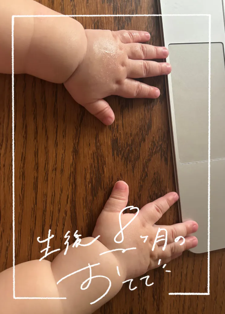 息子を抱っこして出勤している時、必死で抱っこ紐を掴むおててや「ママ抱っこー」と手を伸ばすおててを見て、なんとかこの尊い瞬間を残す方法はないかな?と考えた時に『おててカード』良いんちゃう?と思いました。笑