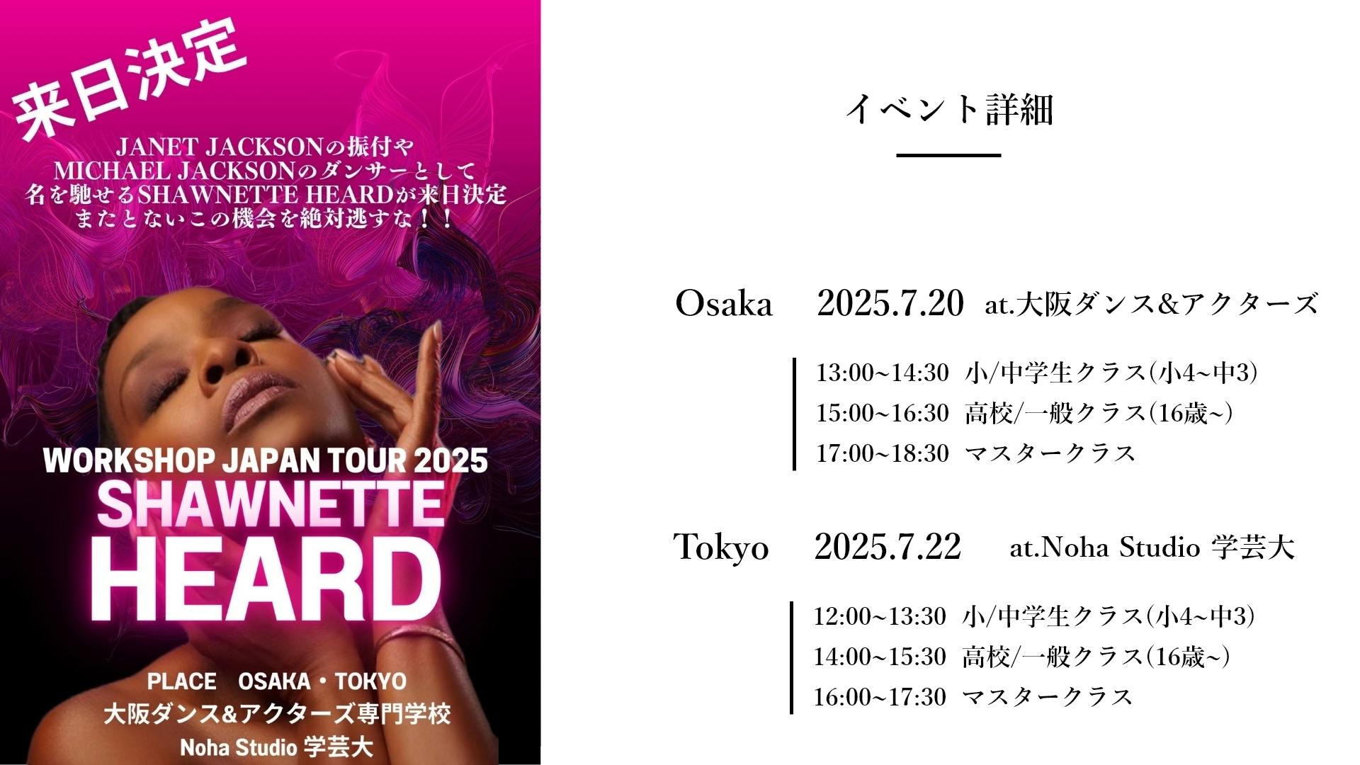 『SHAWNETTE HEARD WORKSHOP JAPAN TOUR』開催!