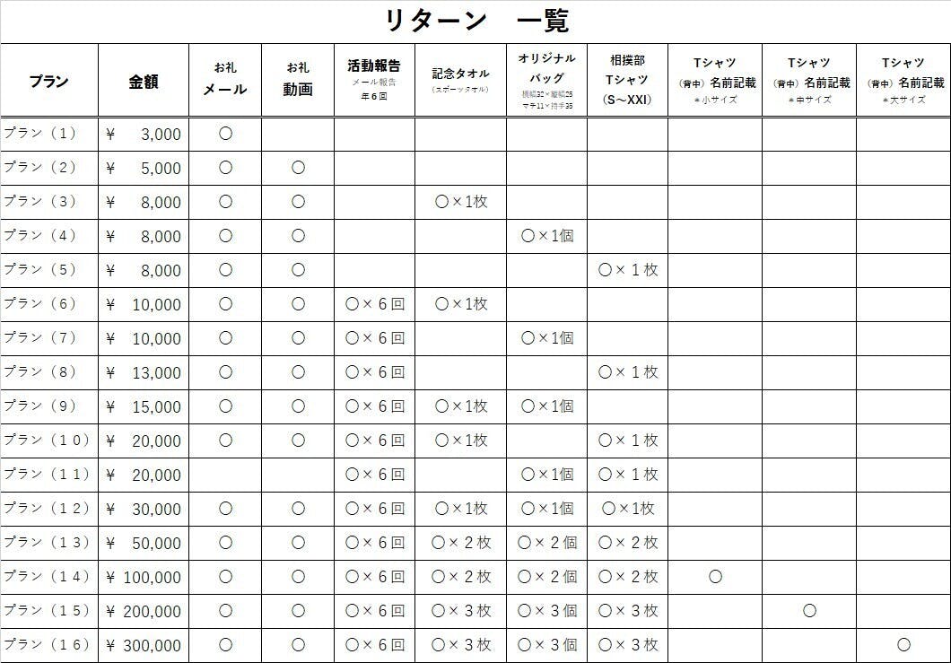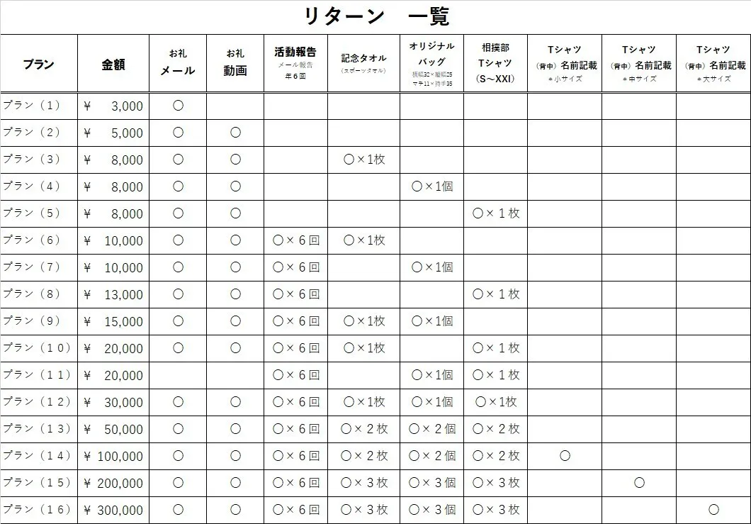●相撲部オリジナルティシャツ(背中)名前記載 … オリジナルティシャツの背中にご支援いただいたお名前(企業名)を記載いたします。