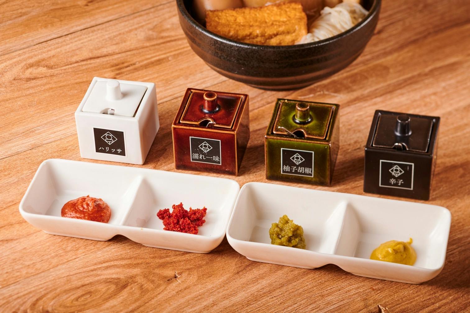 このように、種類豊富な薬味を取り揃えておりますので、お客様の好みに合わせておでんをお楽しみいただけます。