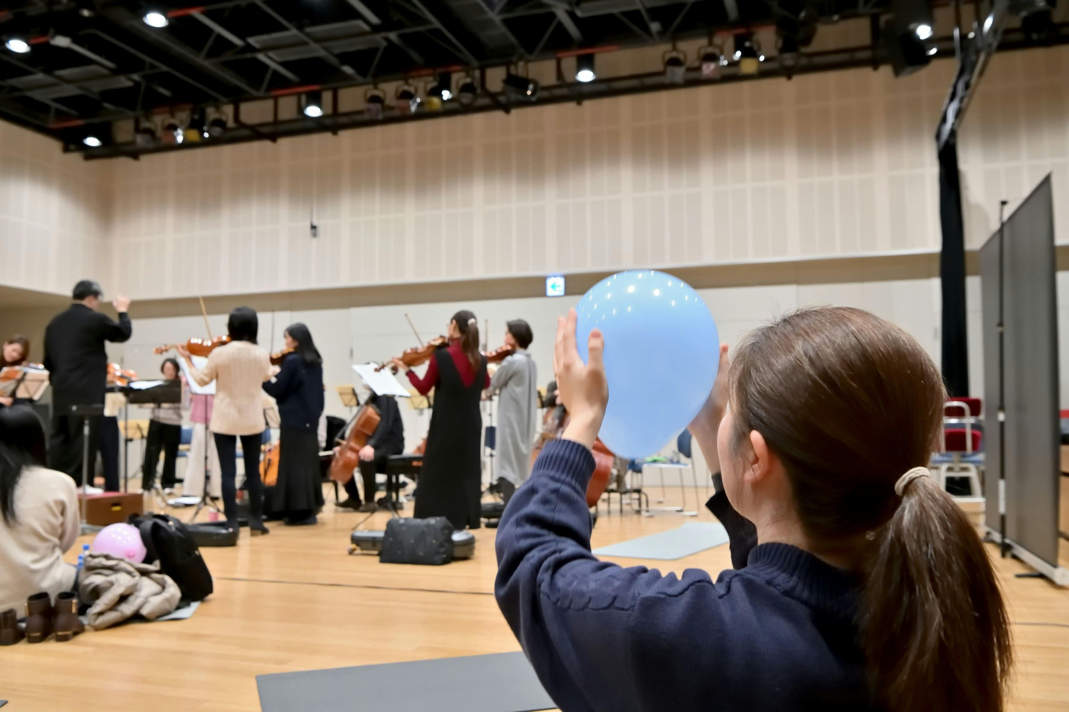 松永悠太郎氏による委嘱新作では、音楽家が客席に散らばり、お客様の中に入って演奏します。また、お客様には風船を配り、音の振動を視覚や触覚でも実感できるようにします。そのような仕掛けを通して、一方通行の「演奏」ではなく、会場全体が楽器となる「ヒビキアウ体験」をつくり出します。また、ご希望の方には実際に楽器に触れられる体験企画も予定しています。