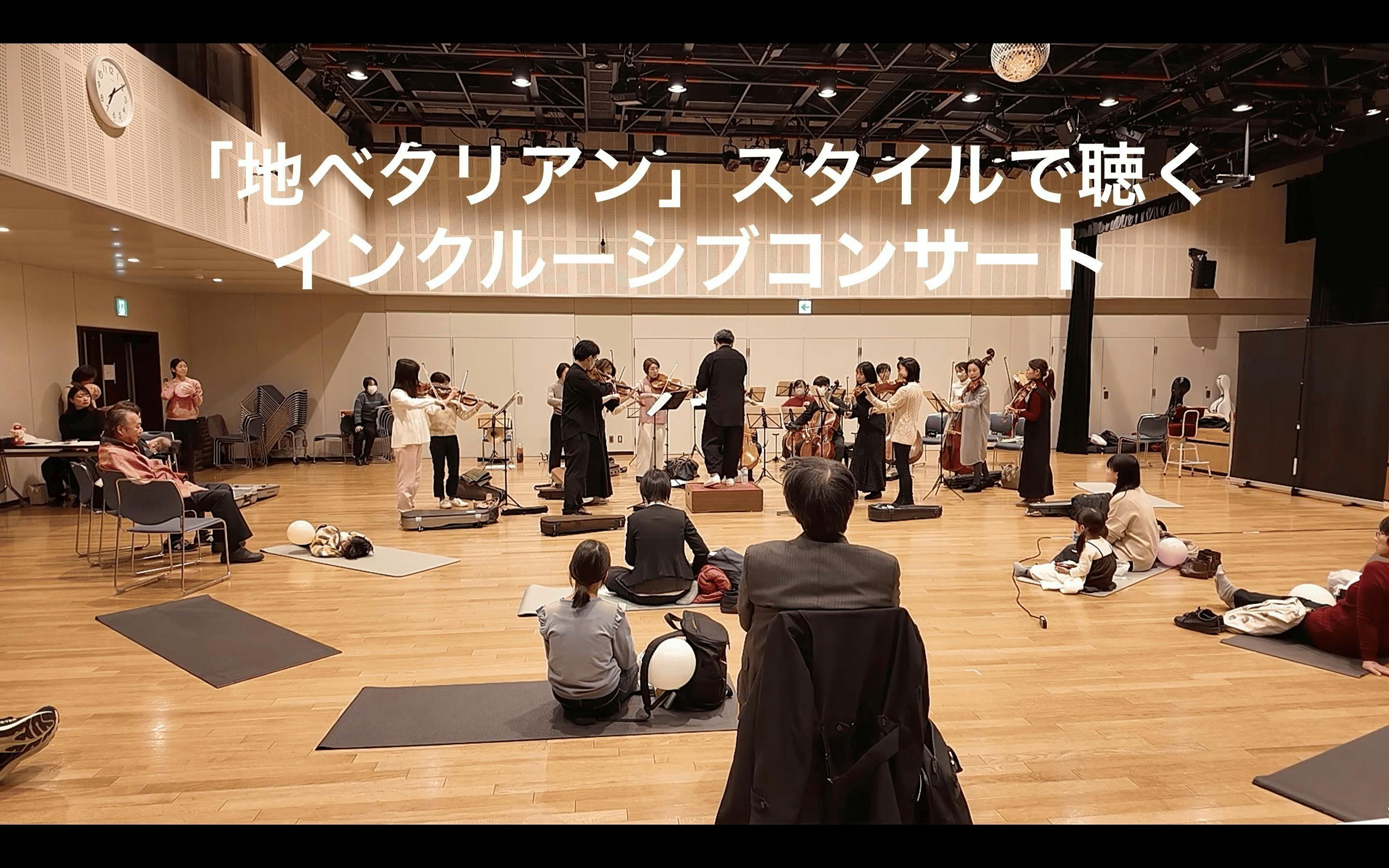 日本人は床に座ると自然と安心して、落ち着きます。そして、オーケストラと同じフロアで演奏を聴くと、耳で感じる「響き」だけでなく、直に身体に伝わってくる音の振動を感じることができます。リラックスして聴いてほしい。響きを身体全体で感じてほしい。そんな想いからできた、Neoclassical Collectiveの新しい手法が「地ベタリアンスタイル」です。