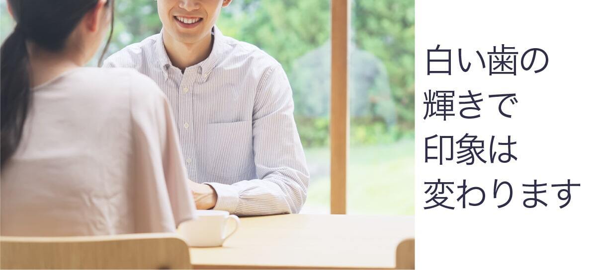 そこで見えるのが、くすんだ歯か、輝く白い歯か??その違いが、あなたの印象を大きく左右します。