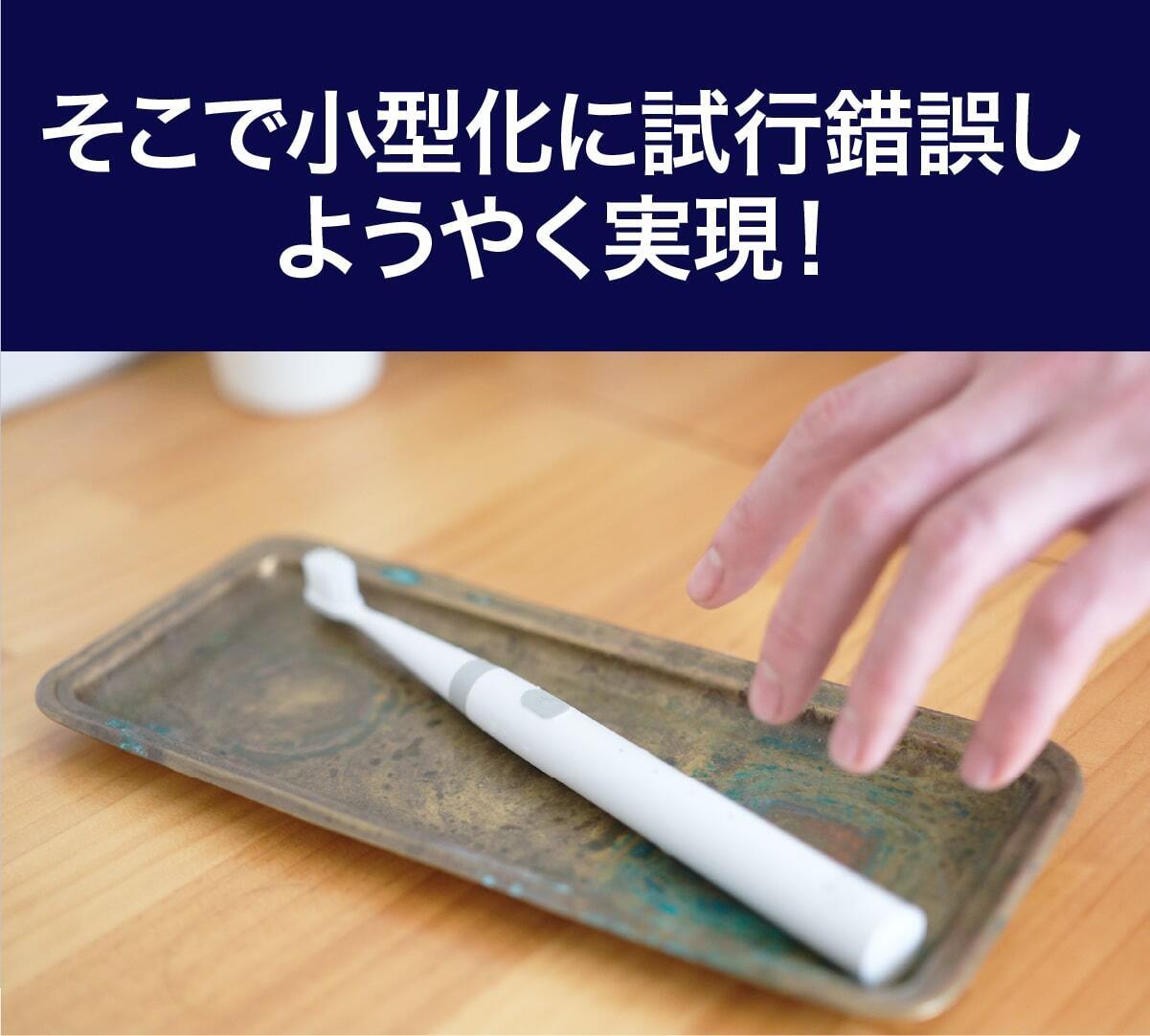 今までの電動歯ブラシを大きいと感じたことはありませんか?普通の歯ブラシから電動歯ブラシに変えた時にそれを大きく感じると思います。電動歯ブラシは構造上、大型化してしまうのですが、常識に囚われずまったく新しい電動歯ブラシを設計したのがこのミニマルソニックです。新発想の構造で小型でパワフル。未来の体験をはじめましょう。