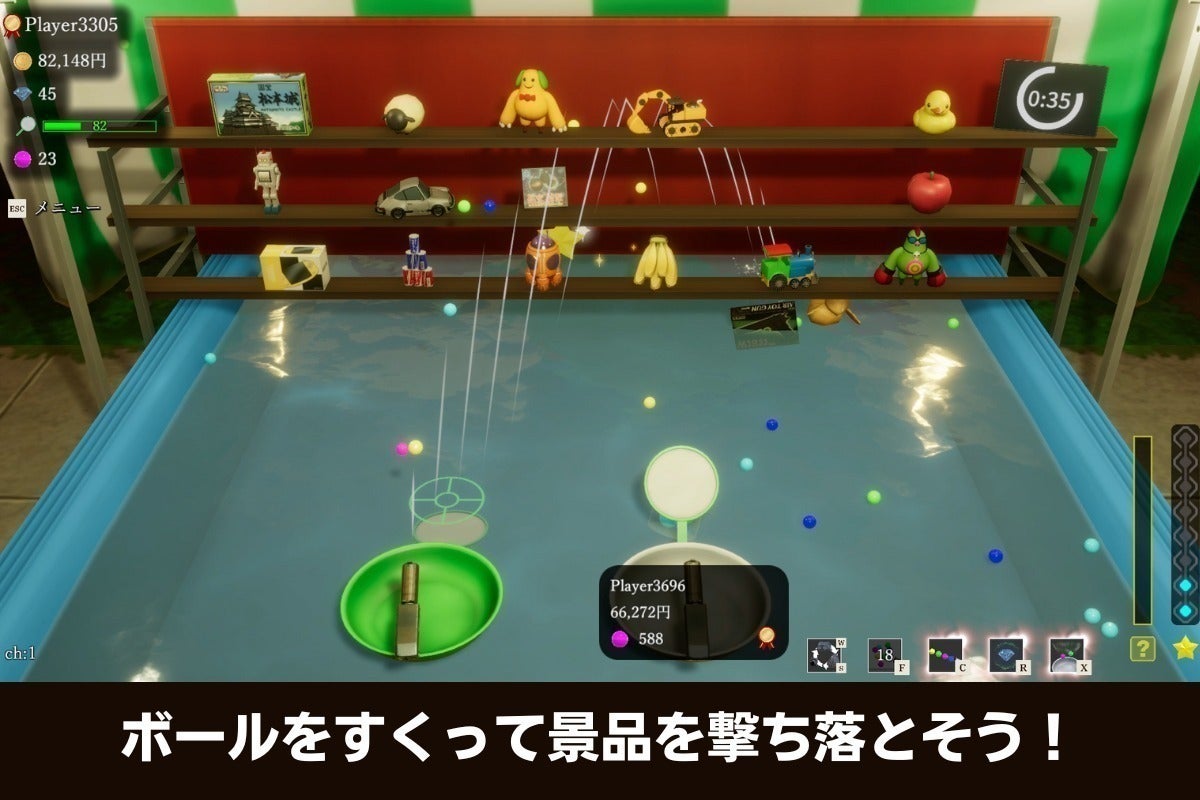 「ボールすくいフレンズ」は夏祭りといえば定番のボールすくいと射的が融合した、最大4人でワイワイ遊べるゲームです。