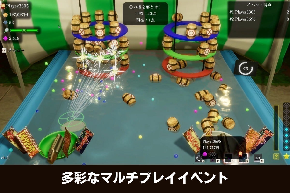 ショットガンや連射などの射的の強化に加え、当社ゲームの定番である育成要素やミニゲームなども登場します。