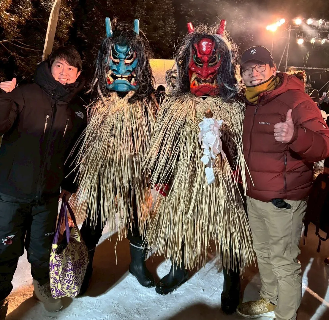 「なまはげ柴灯まつり」に参加した様子。山に連れていかれるんじゃないか、と思うくらいの迫力!!