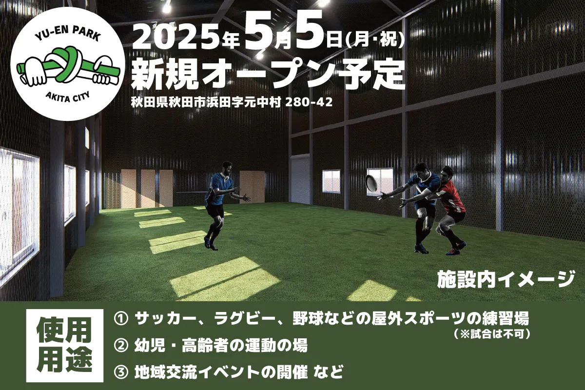 2025年5月5日|秋田市「屋内人工芝グラウンド YU-EN PARK」オープン予定!