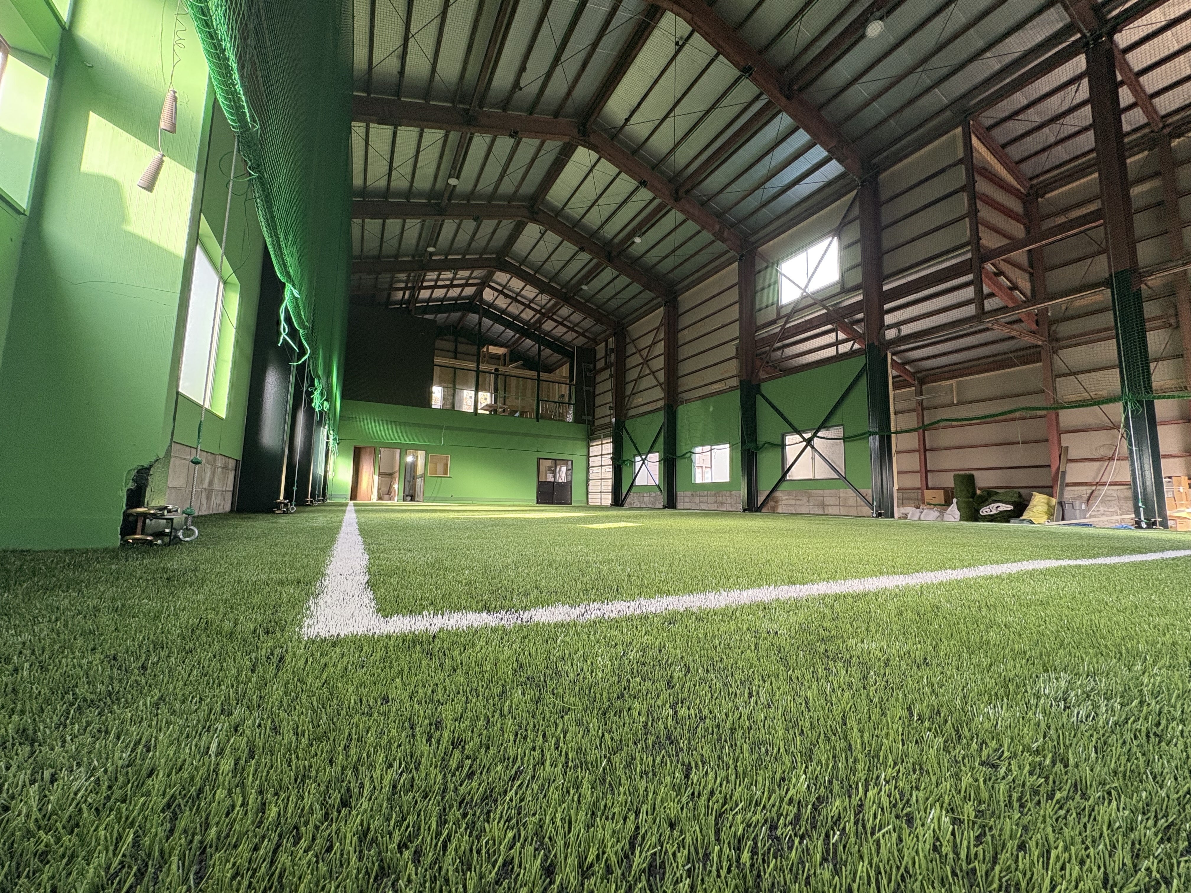 そこで、無いならつくろう!・・・の意思のもと考えたのが、「屋内人工芝グラウンド」です!