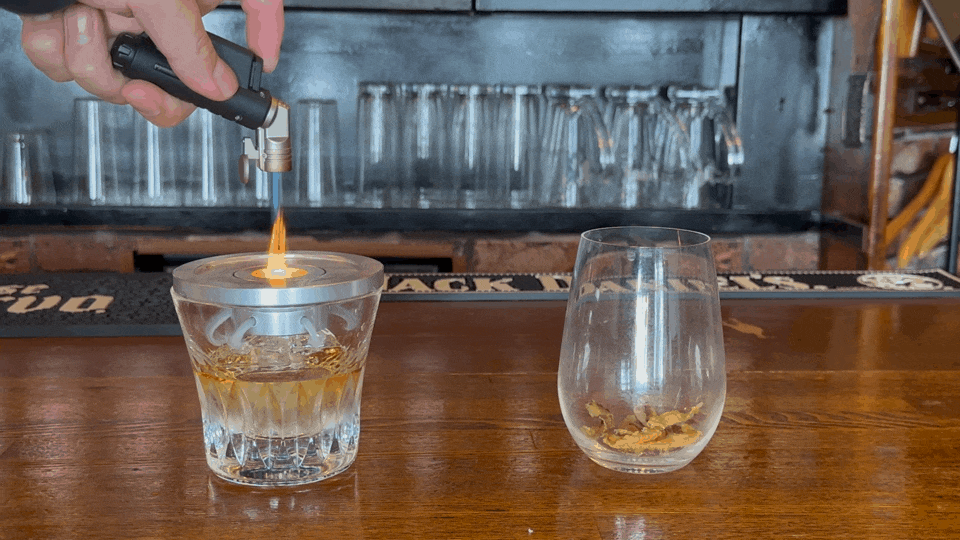 ③グラスの上で燻すだけ