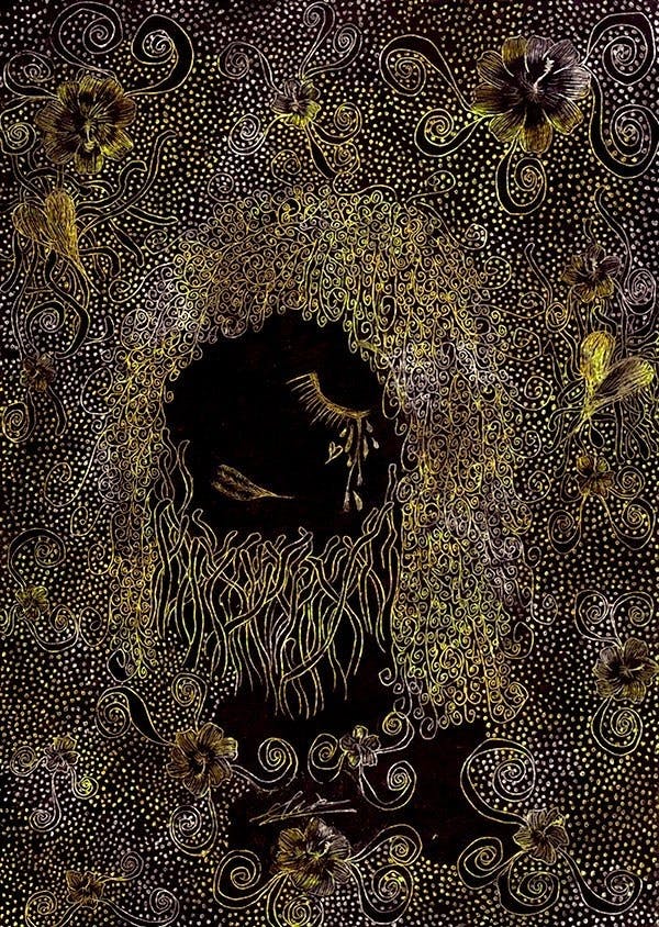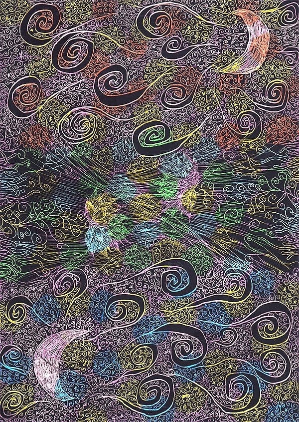 その当時はクレパスにてスクラッチアートという細密画を描いていました。