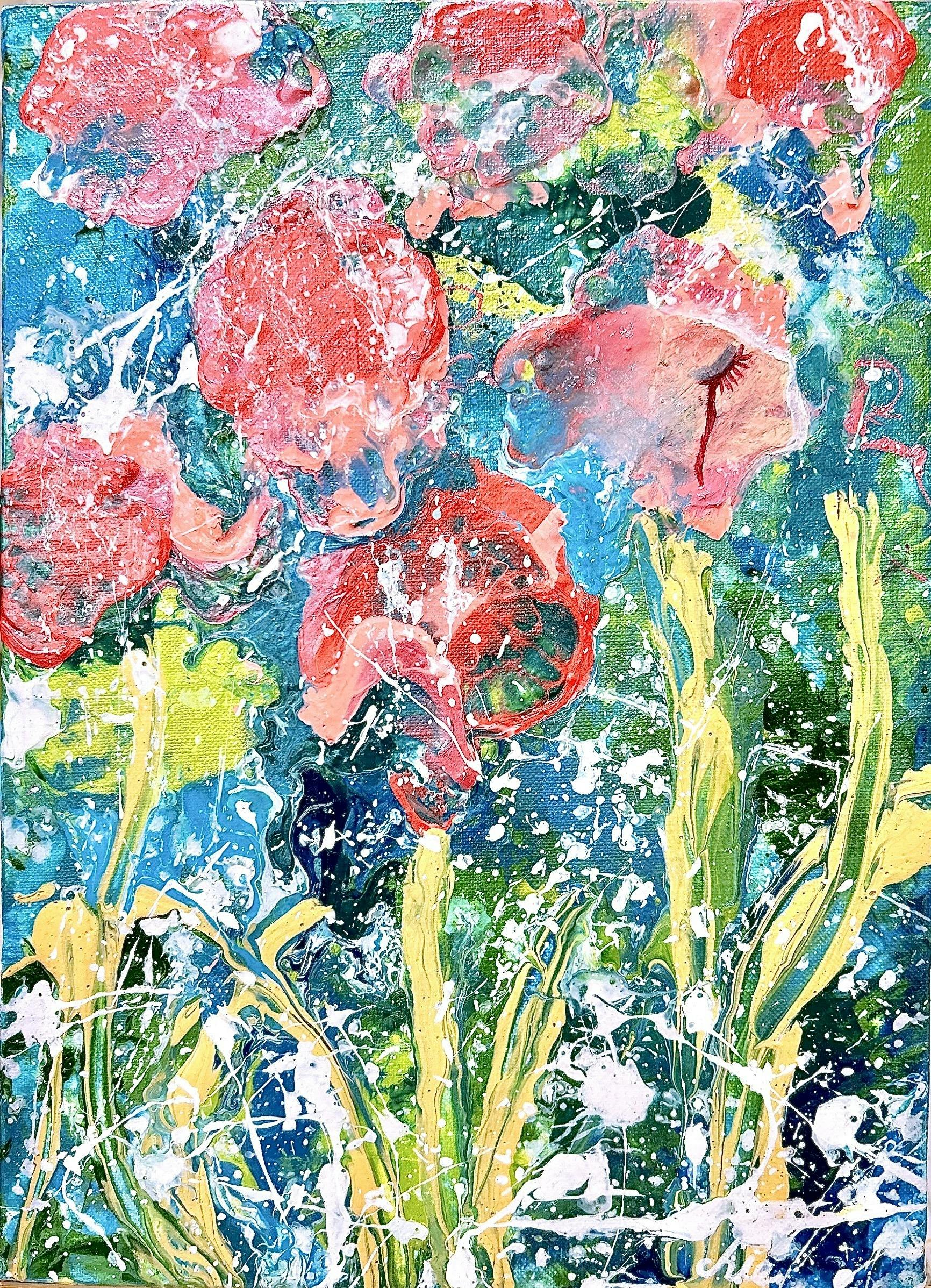 アクリルと油彩で抽象画をメインに描きながら、そこには己の感じてきた「感情」や「生命」、「生きる事」を詰め込みました。