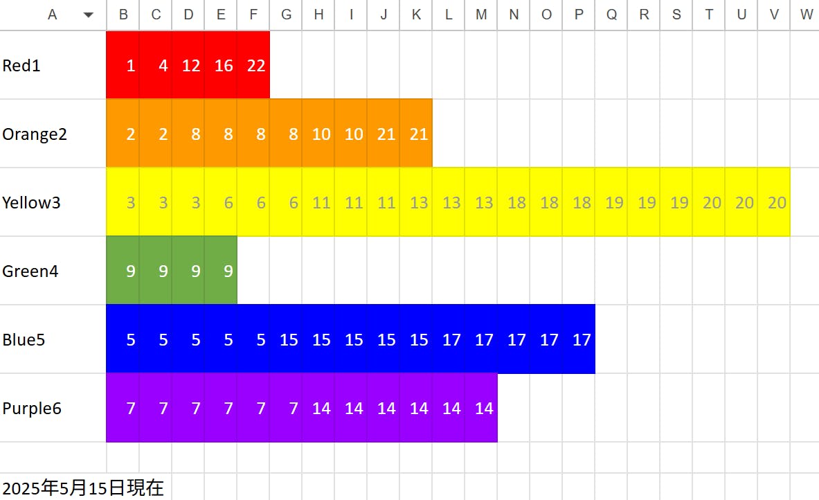 今日はレインボーの色付け具合を白字で示してみました。色塗りは実はアナログに支援いただいた順に番号を入れています^^;