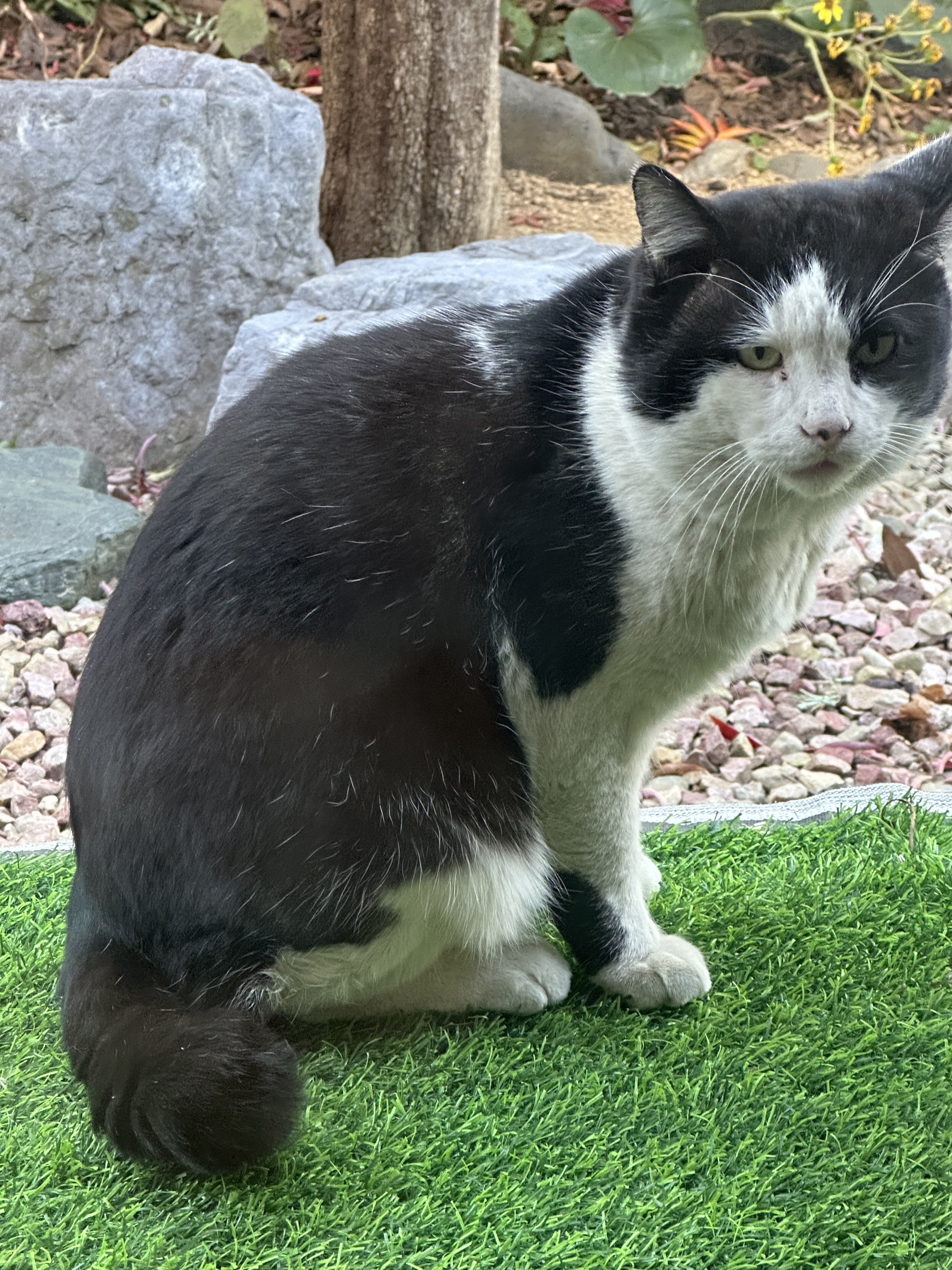今年の1月初めの早朝に病院に並んでました。道の真ん中で目の前を歩いてく人たちの足元に駆け寄り必死に鳴いてる猫がおりました。餌付けされてる野良猫かな?と思いながらも誰彼構わず人に近寄り、そして無視されおじさんに蹴られそうになっており、たまらず近づくとこちらを真っ直ぐ見上げニャーと鳴いてきました。撫でると嬉しそうにスリスリしてきて抱き上げると大人しくしておりました。