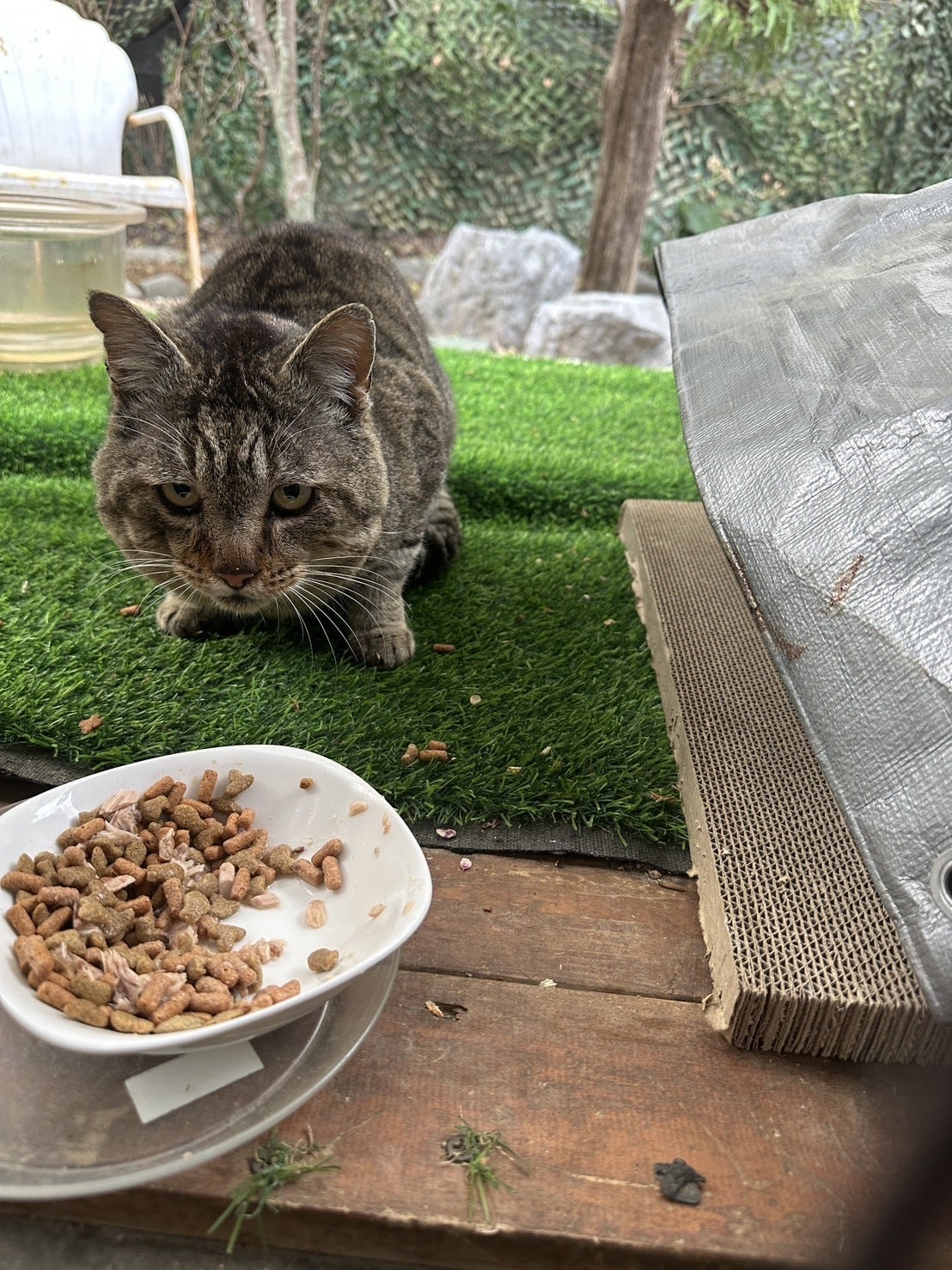 写真の子たちは比較的慣れてきて餌があれば近づいてくるので、もうしばらく続けたら捕獲機で捕まえることができるかもという段階です。捕まえたら去勢手術をし、TNRとなるかはまだ未定です。
