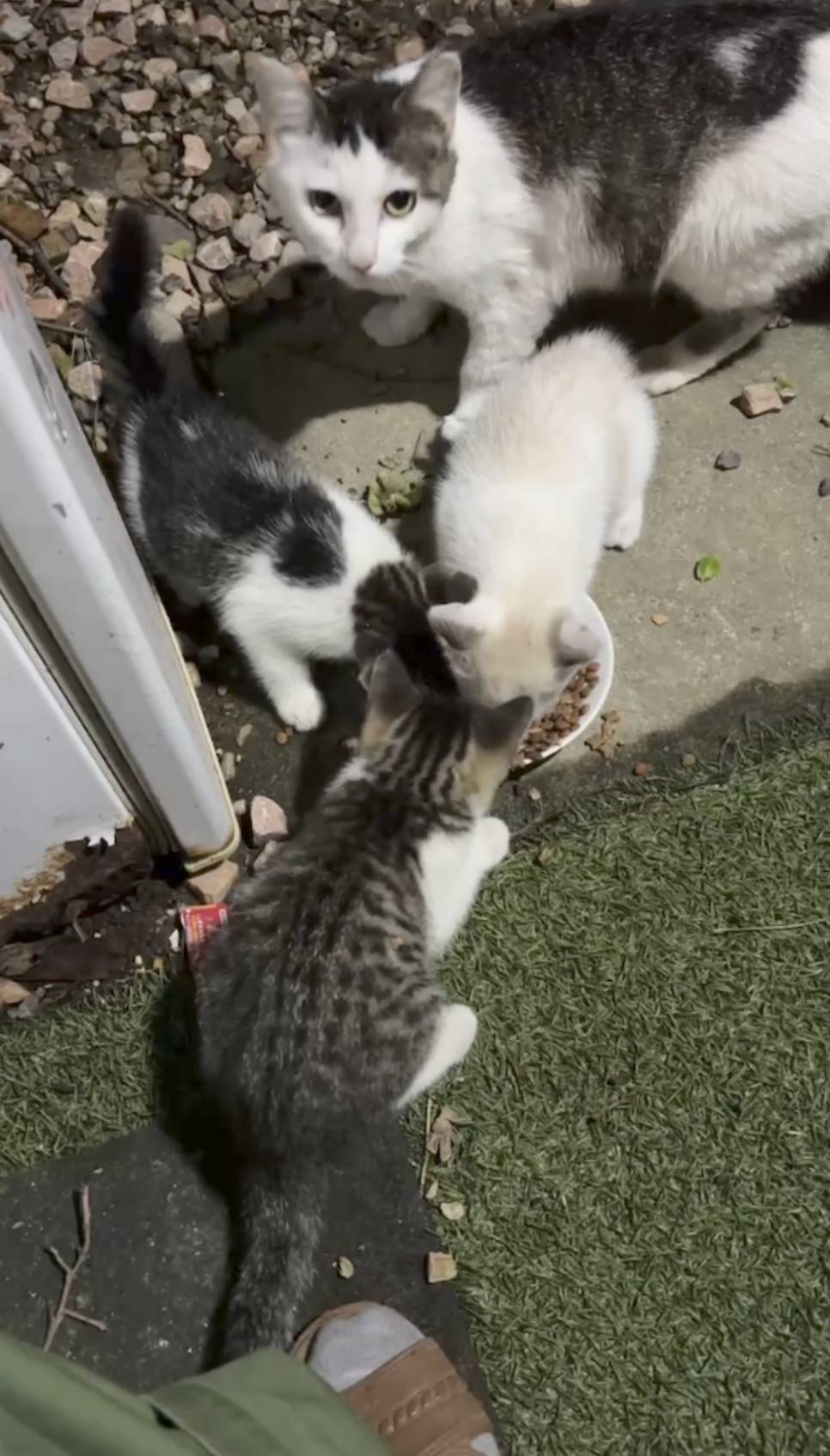 去年猫が1匹実家に通うようになり、餌を必死に求めてきたので抱き上げると母乳をあげてるようだったのでご飯をあげ庭に放してあげると翌日に生後3.4か月ほどの子猫を3匹連れてきました。