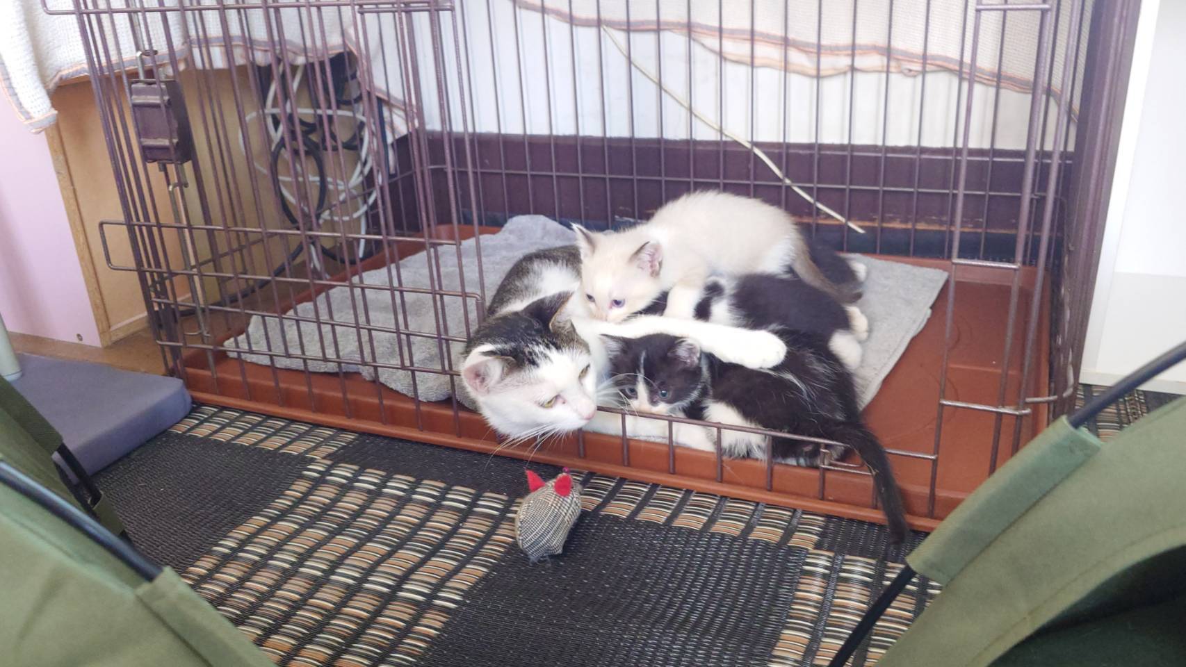 子猫を連れて助けを求めてきた母猫を保護、大きくなってきた子猫たち含め順番に避妊・去勢手術をし里親探しをしております。