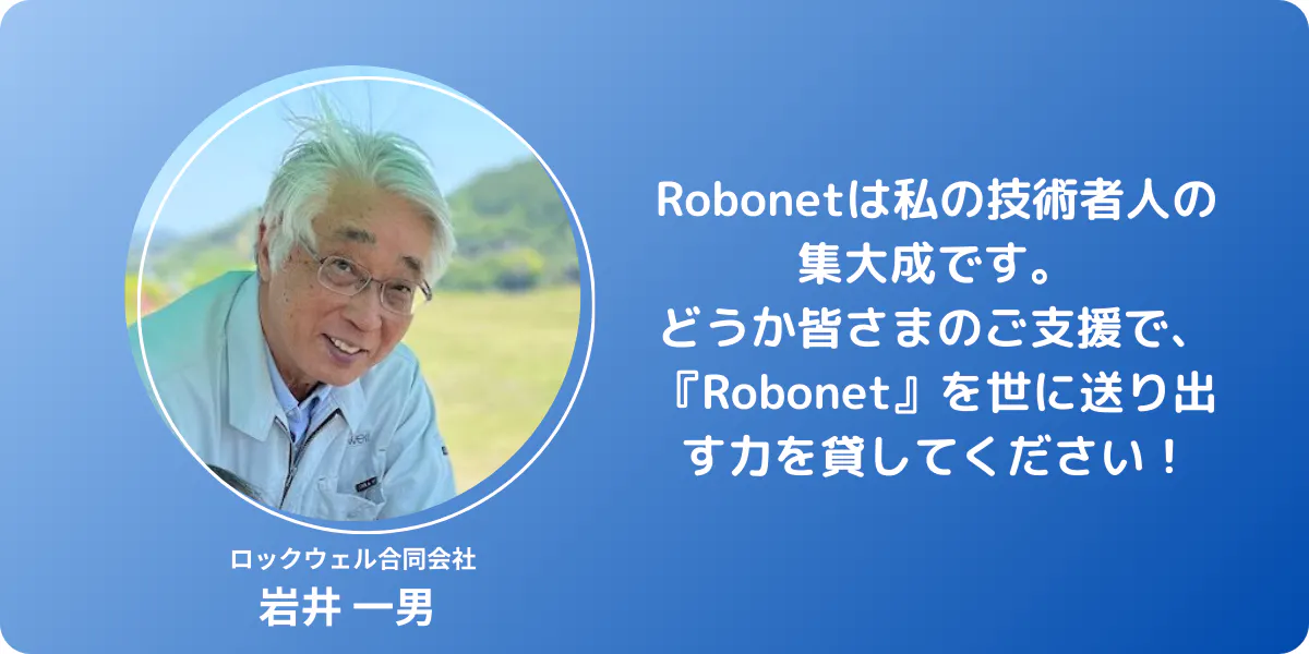 コロナ禍による仕事の激減が転機となり、ヤマハ時代の先輩とRobonetの開発を本格的に始めました。法律上の制約とその対策、業者テスト結果や評価による設計の見直しなど苦難の連続を共に乗り越えてきました。