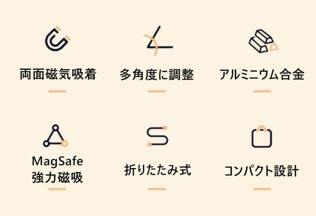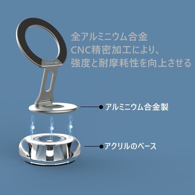 両面磁吸設計を採用したMagsafe対応のスマホスタンドです。車載ホルダーとしても、スマホスタンドとしても使用でき、さまざまなシーンで利便性に優れています。