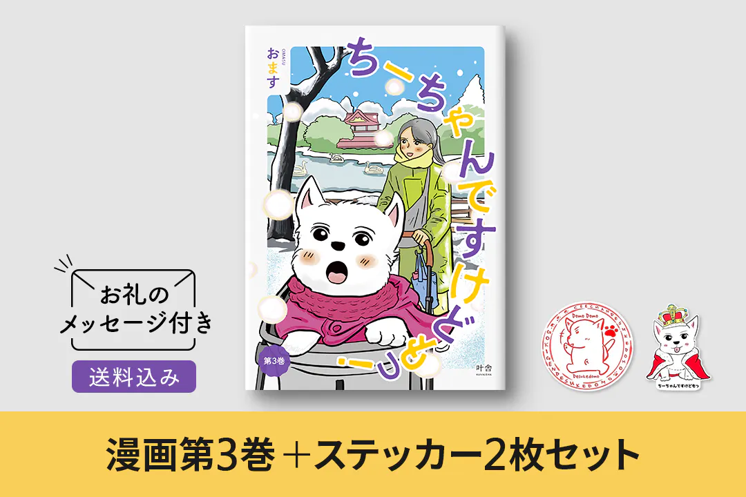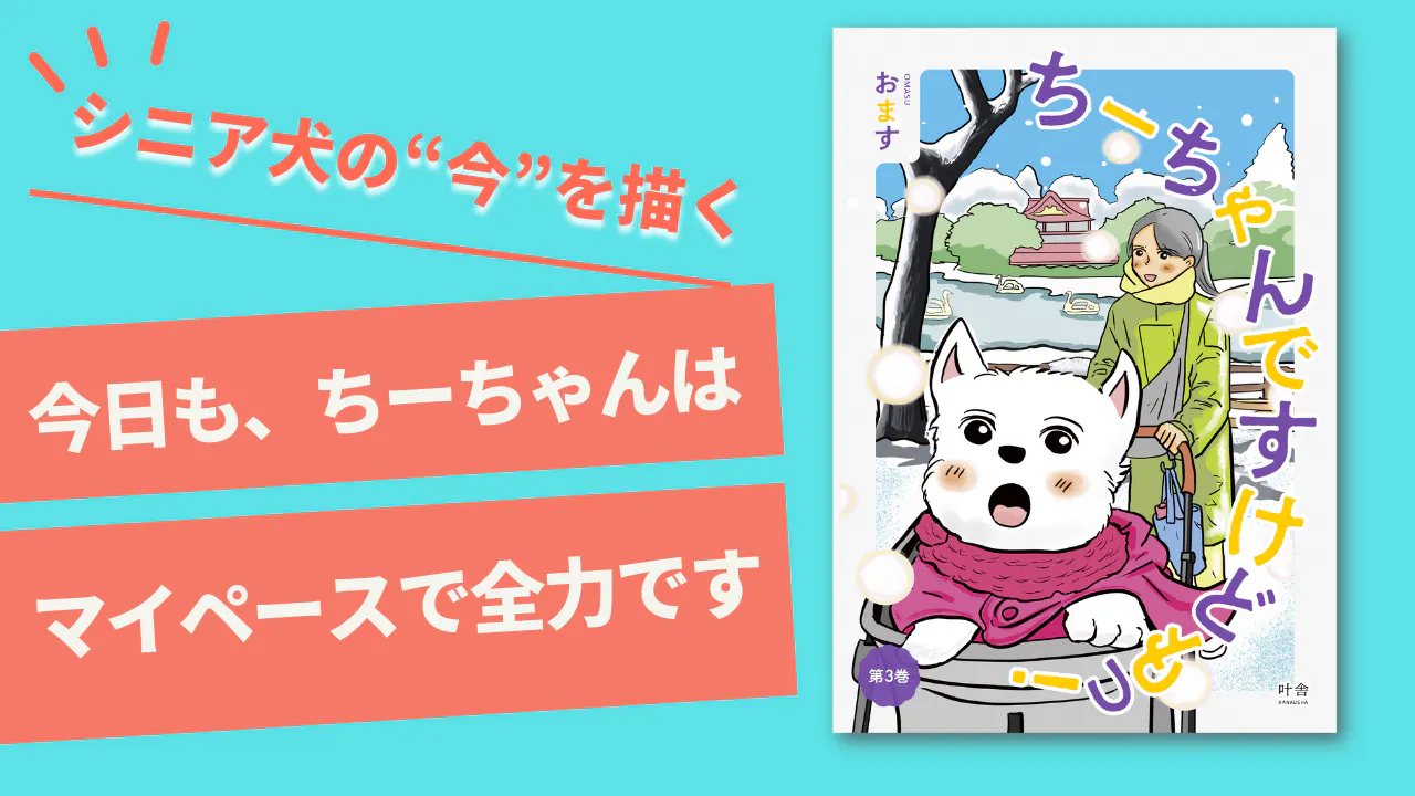 第3巻では、そんな“今”のちーちゃんとの日常を、シニア犬ならでの病気もありのままに、その対応も明るく前向きなトーンで描いていきます。