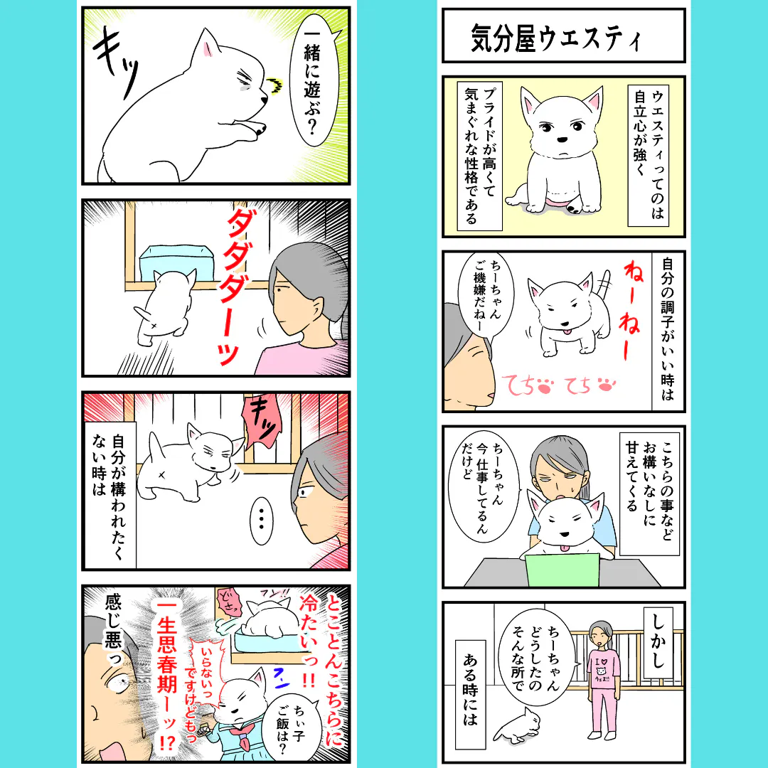 相手は、ぬいぐるみのような見た目で人々のハートを撃ち抜く──けれども中身は筋金入りの頑固者──「ウェスティ(ウエスト・ハイランド・ホワイト・テリア)」という犬種のちーちゃん。