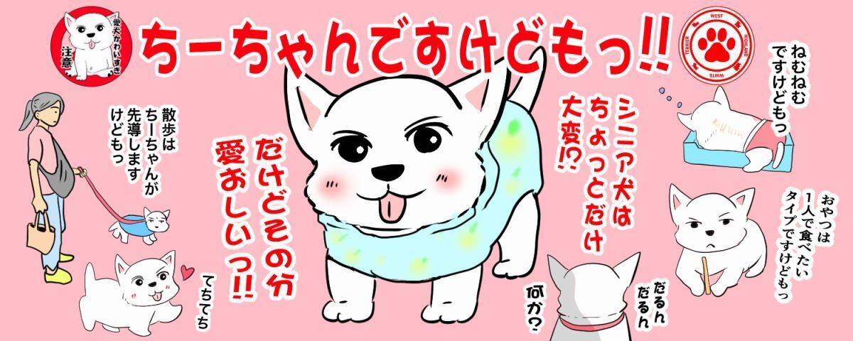 『ちーちゃんですけどもっ!』は、16歳のシニア犬・ちーちゃんと暮らす飼い主の日常を描いた、ほっこりして、ちょっぴり泣けて、ふっと笑えるエッセイ漫画です。