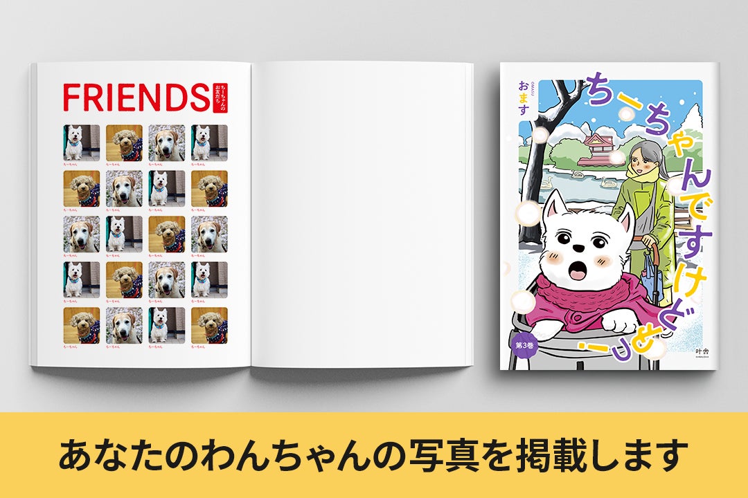 20名限定であなたの愛犬のお写真と名前を漫画「ちーちゃんですけどもっ!」第3巻の巻末に掲載させていただきます。