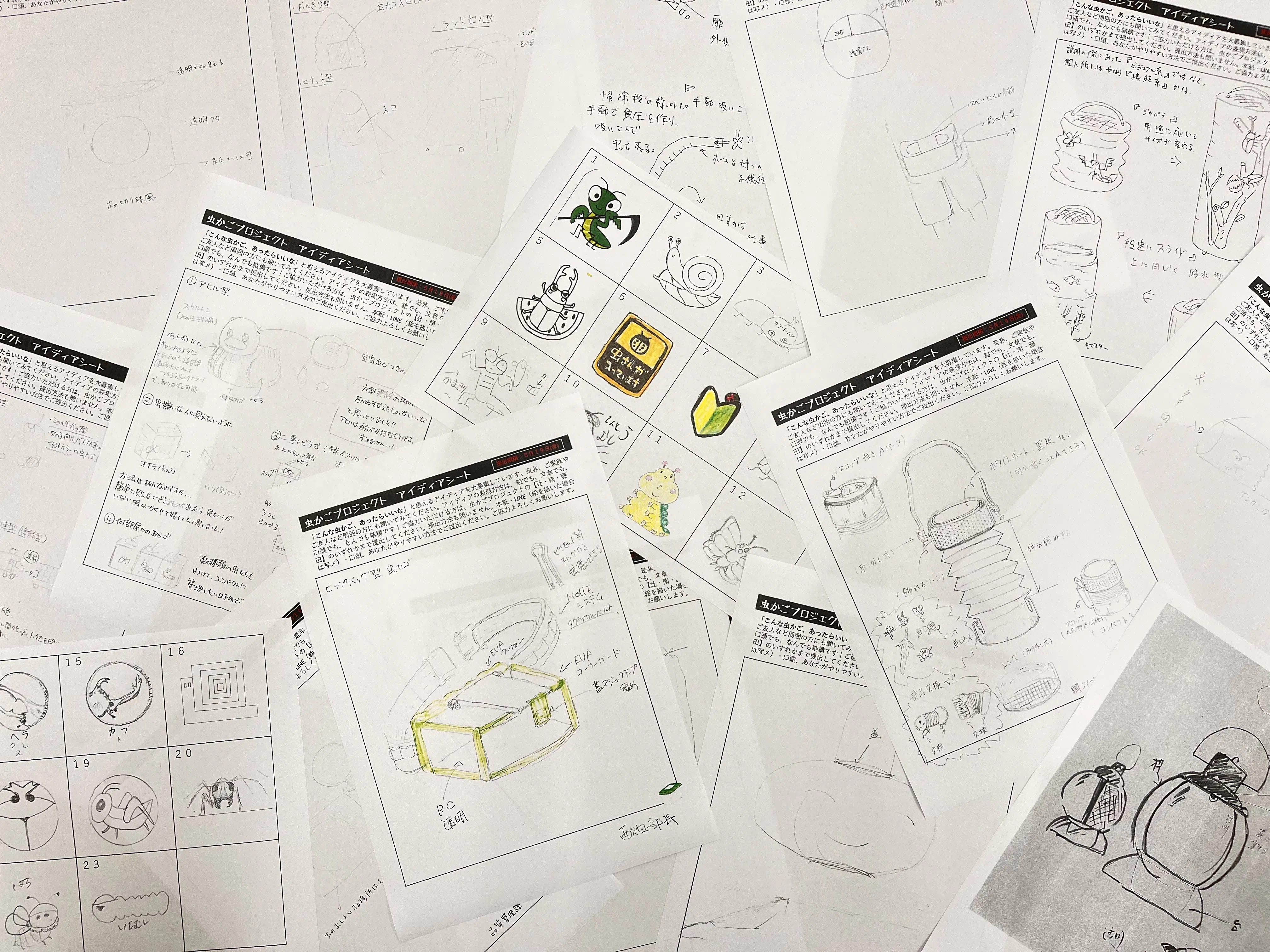 ただ、今回はプロジェクトの中心メンバー達が「全従業員で考えよう」という雰囲気作りを積極的に行ってくれたおかげで、ほぼ全ての従業員からアイデアが集まり、とても良いスタートを切ることができました。また、製品案以外にもパッケージ等に使用する昆虫イラストの募集も行いました。結果、社内の隠れ画伯を数名発見することができました(笑)。