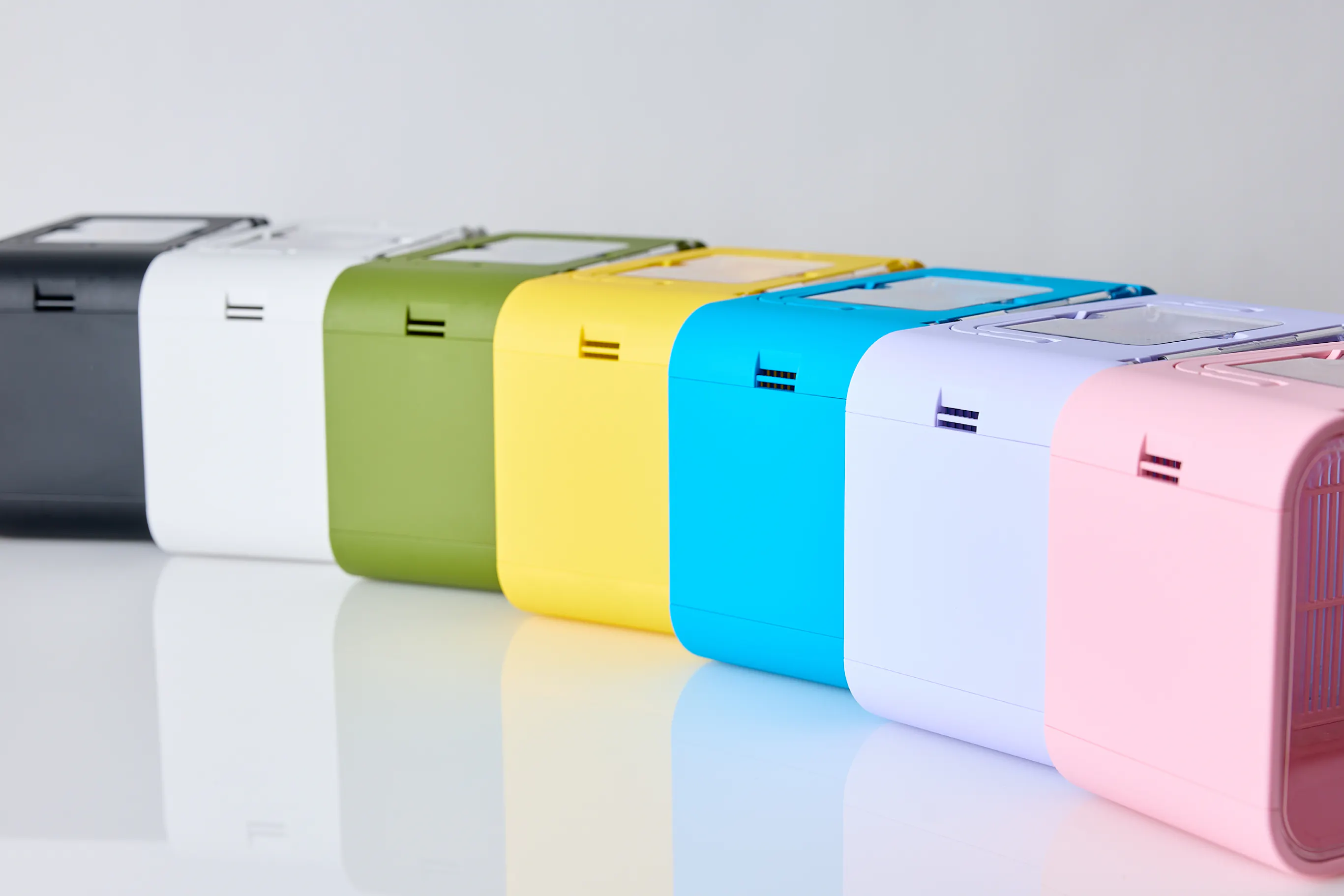 「長く使う」ことの要素の一つとして、カスタマイズ性、オリジナル性も重要視しました。虫かご本体のカラーは全7色展開。どの色を選んでもパーツの形はすべて同じですから、色違いでそろえると、複数の色を組み合わせることも可能です。