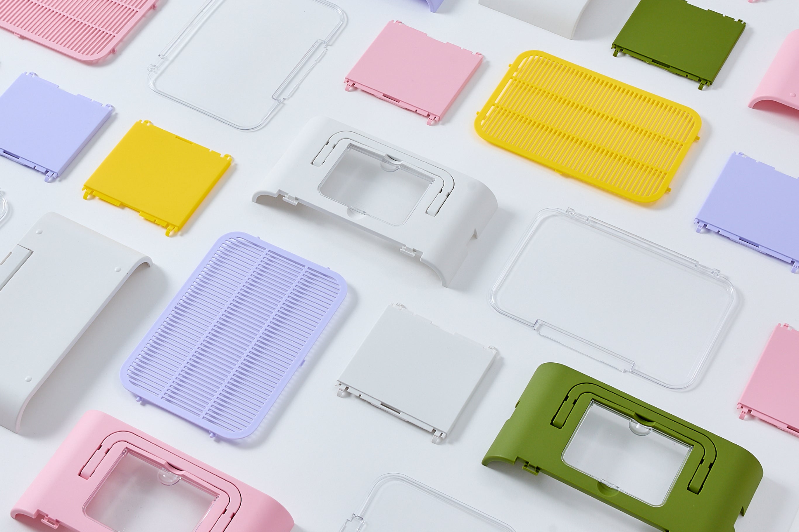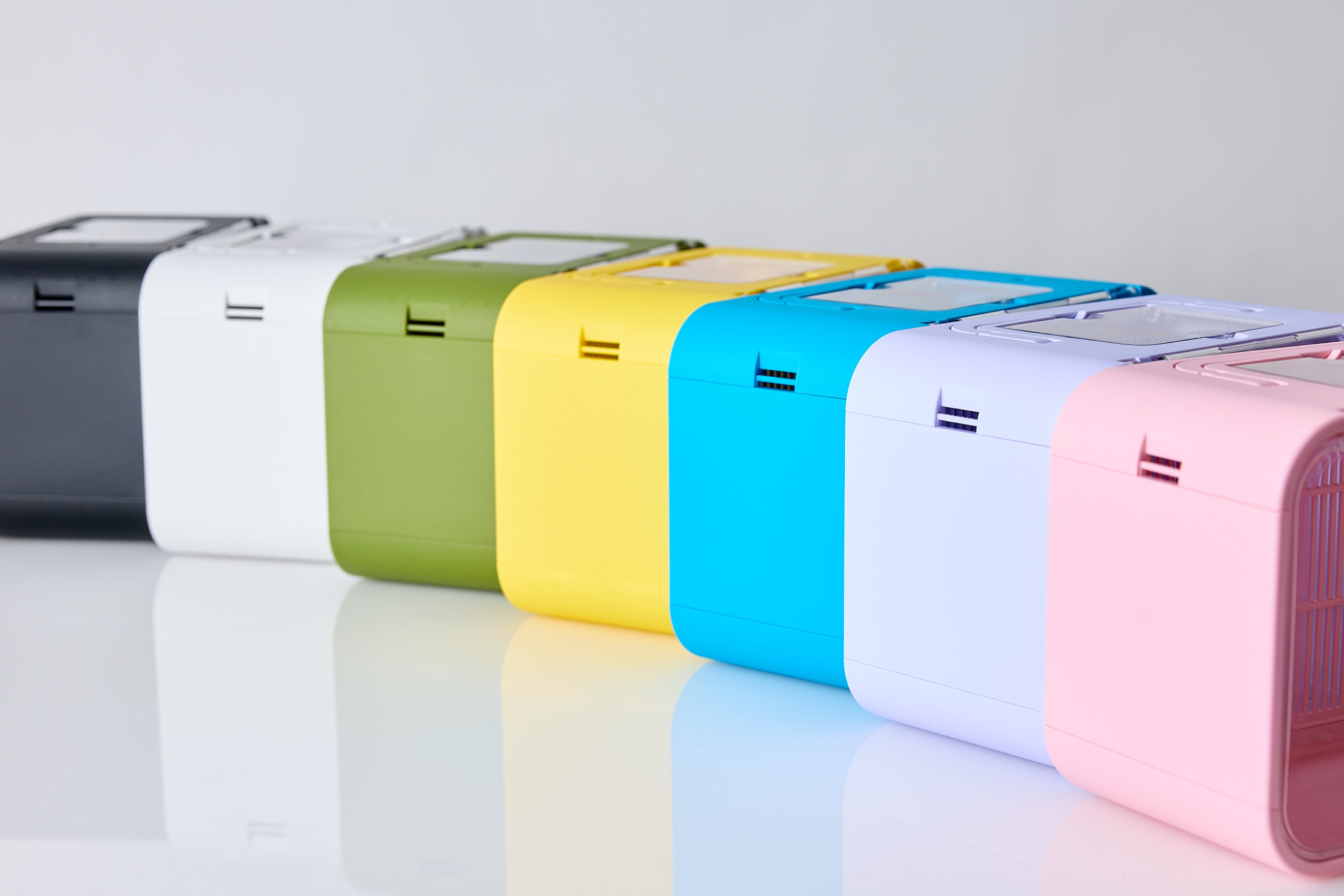 「長く使う」ことの要素の一つとして、カスタマイズ性、オリジナル性も重要視しました。虫かご本体のカラーは全7色展開。どの色を選んでもパーツの形はすべて同じですから、色違いでそろえると、複数の色を組み合わせることも可能です。