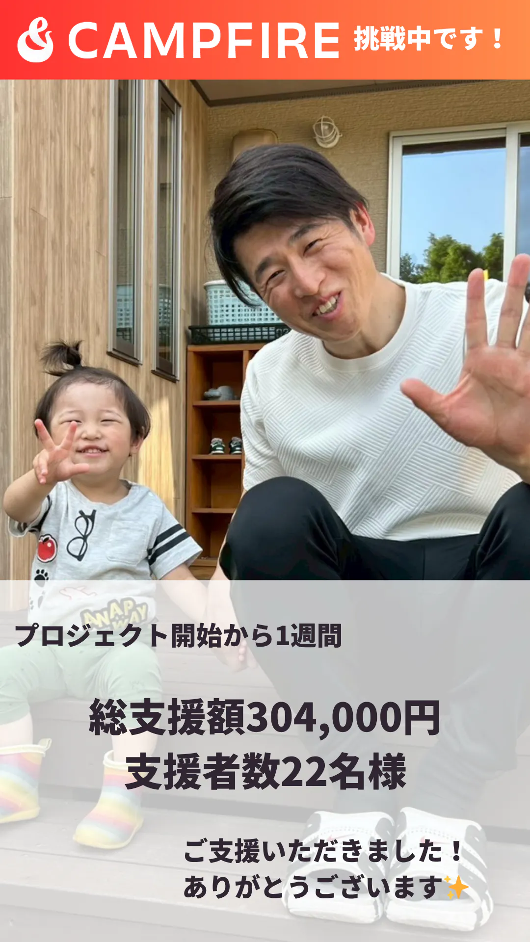クラウドファンディングをスタートしてから、ちょうど1週間が経ちました。この1週間で、304,000円(目標60万円の約50%)ものご支援をいただいております!