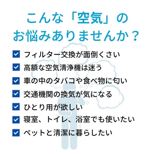 会社でマイ空気清浄機として使ったり、旅行や出張先の慣れない臭いを消したりと、様々なシーンでお使いいただけます。