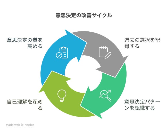 2.自分の選択を振り返る文化の普及 単なる記録ではなく、内省を促す問いやフォーマットを用いることで、選択の背景や結果を深く見つめ直す文化を根付かせます。