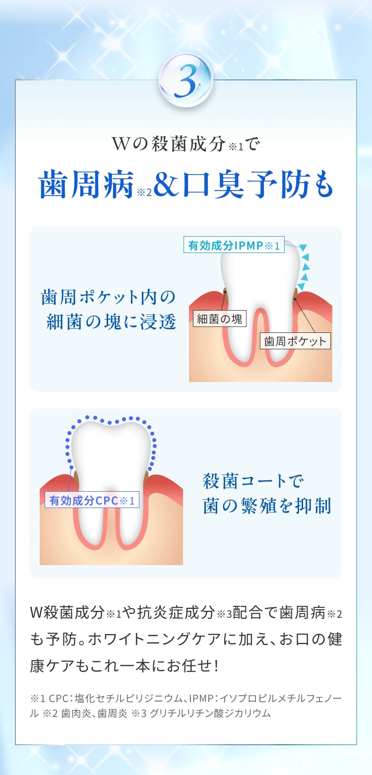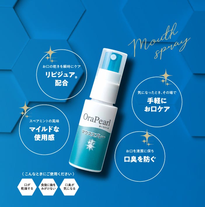 保湿成分を配合しており、お口の乾きを瞬時にケアし、お口の乾きからくる口臭や歯周病(歯肉炎・歯周炎)を予防します。30 mL/本