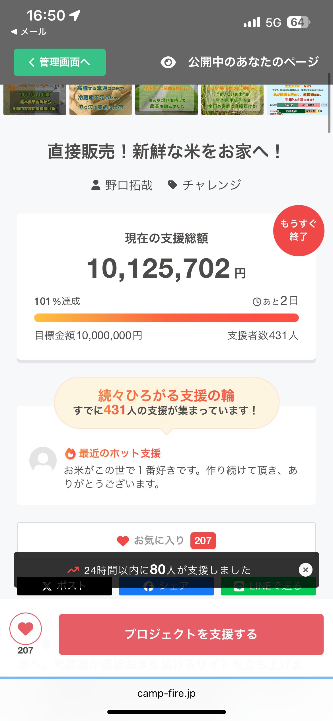 みなさんいつもご支援、応援ありがとうございます!