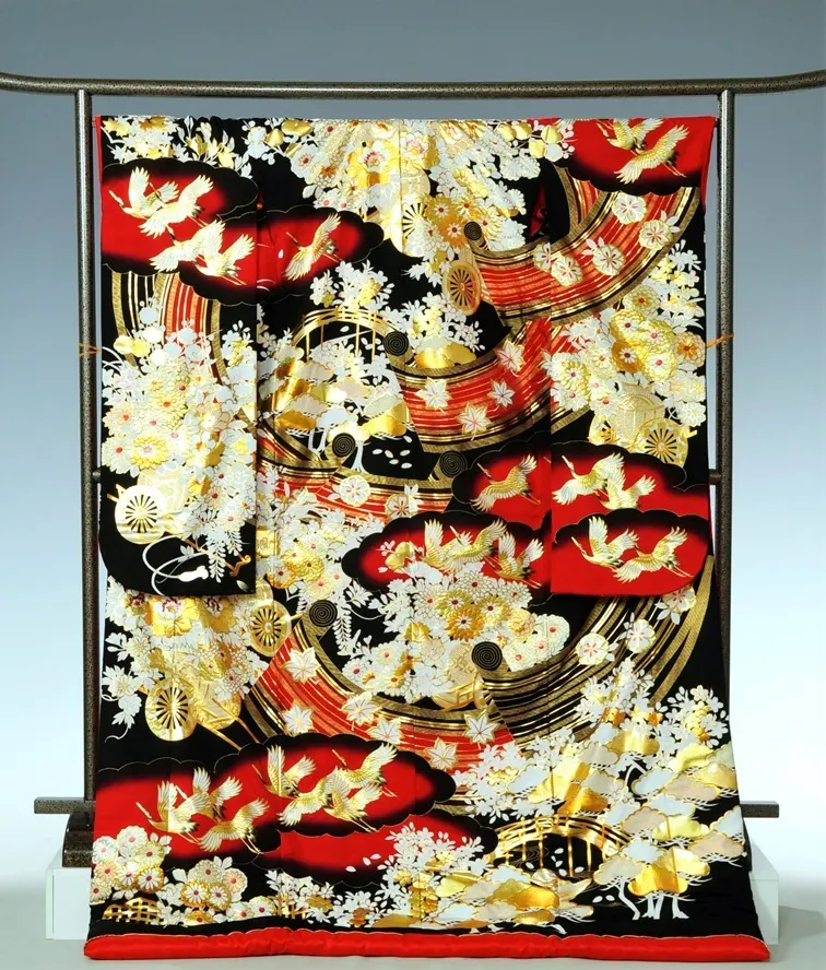 伝統的な色打掛の展示コーナー。写真映えスポットとしても人気。