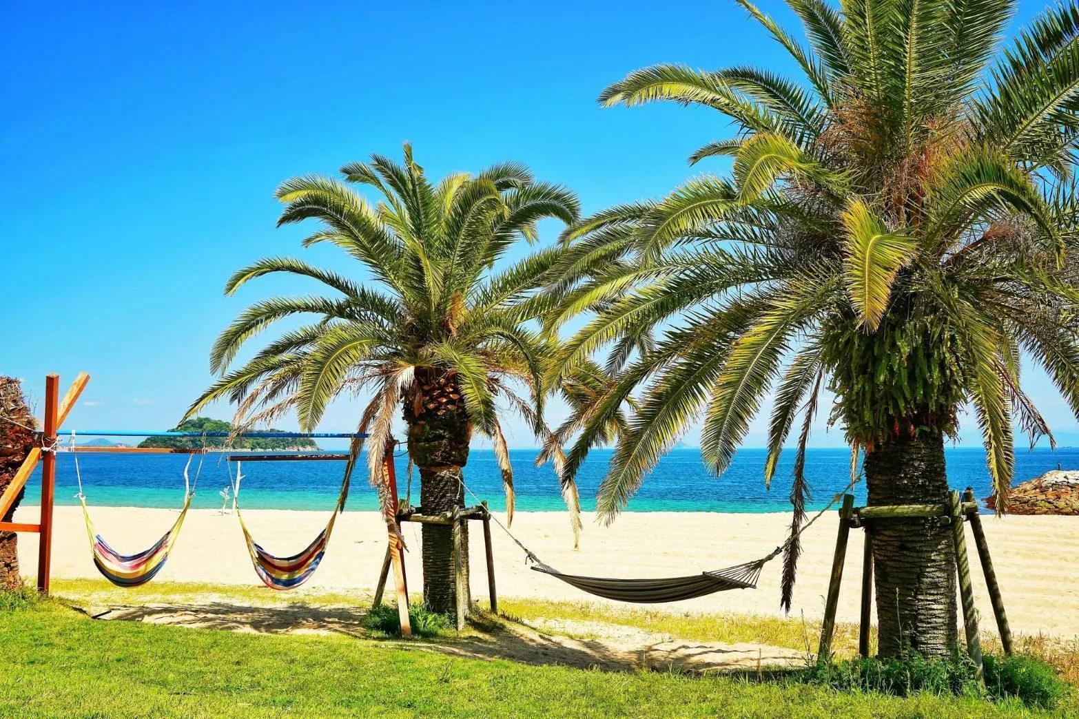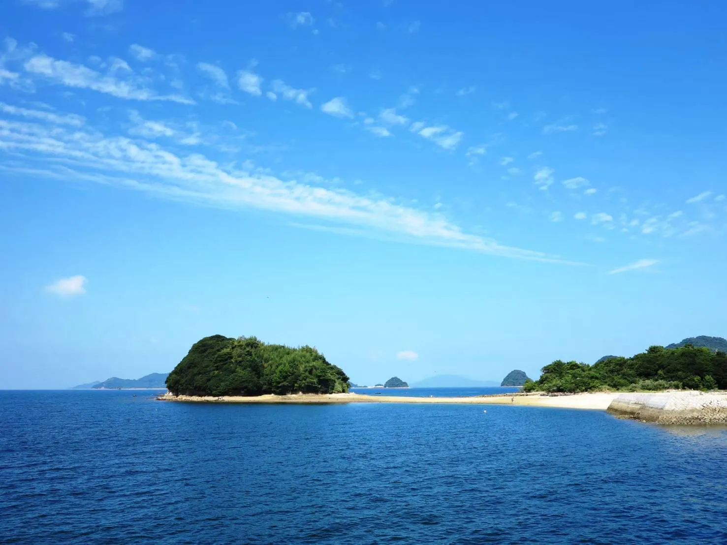 周防大島は、エメラルドグリーンの美しい海と白い砂浜が魅力のリゾート地。特に、片添ヶ浜や屋代島のビーチでは、夏になると多くの観光客が訪れます。