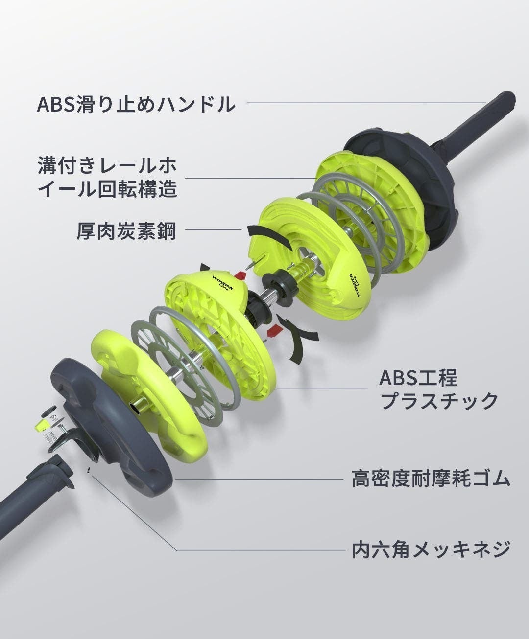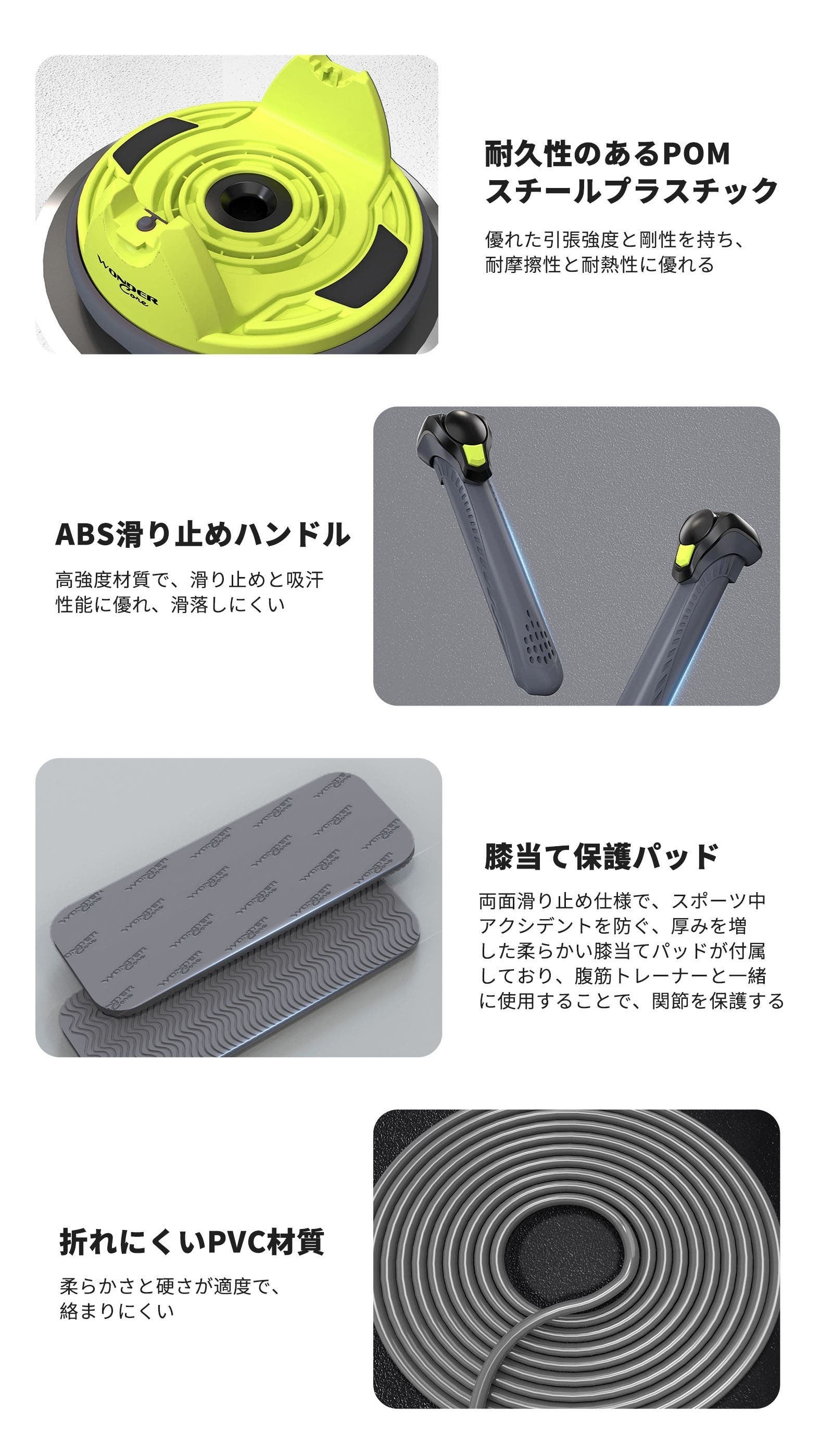 ハンドル内にベアリングが内蔵されており、回転がスムーズで手首への負担が少ないく、絡まる心配や周りの物にぶつかる危険性がなく、室内でのトレーニングに最適です。