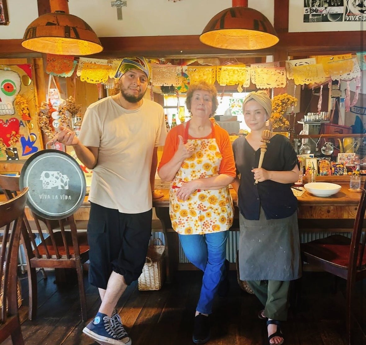 こんにちはマリアです。私はメキシコハリスコ州で生まれ、結婚して日本に来ました。今では35年日本で暮らしていますが、いつかメキシコ料理の店をやりたいと思ってました。その夢を息子夫婦が叶えてくれて、とても嬉しいです。三沢には米軍基地があり、ラテンにルーツを持つ人も沢山いて、昔から知り合いも多く私の大好きな街です。ビバラビダはこの街にピッタリだと思ってます。沢山の人にメキシコ本場の味を食べて欲しいので、応援してくれたら嬉しいです。