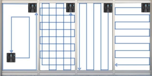 一般的な自動窓掃除ロボットは、窓ガラスの外枠にボディが当たると規則的に向きを変えて往復するだけのものが多く見られます。
