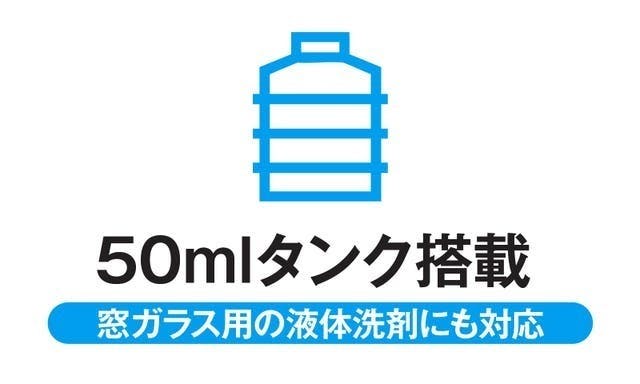 【WinMan10】は窓ガラス用の液体洗剤にも対応できる50mlのタンクを搭載。