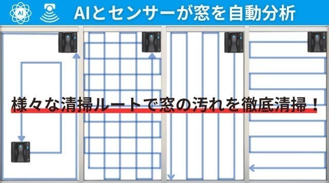 AI x センサーが窓の大きさを自動で感知し、最適な清掃を行います。