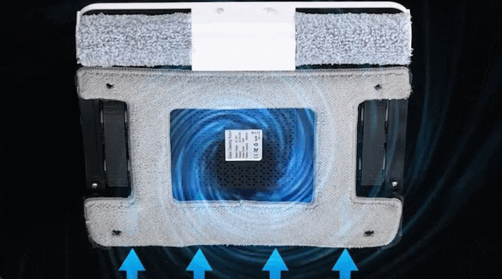 自動窓掃除ロボットが窓に貼り付いてお掃除できるのは、掃除機と同じように内蔵モーターで真空状態を作り窓に吸着するため。
