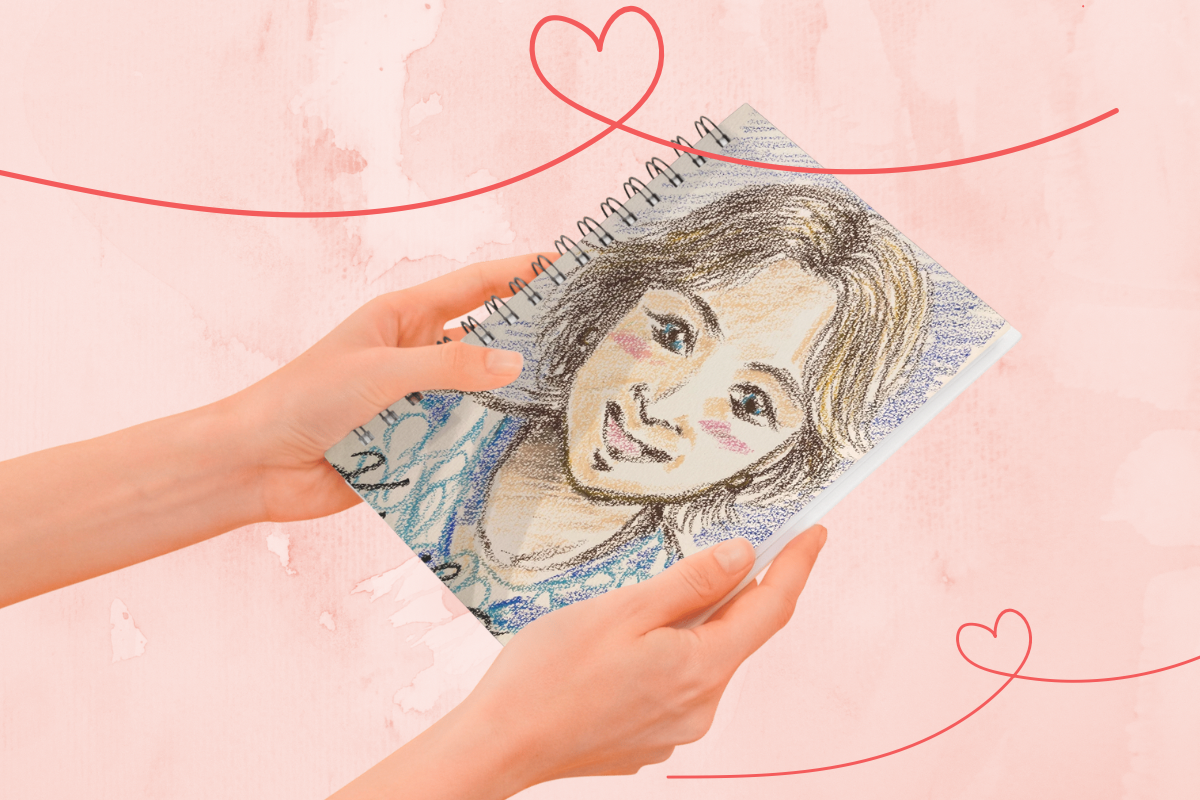 母に似顔絵を渡した時、