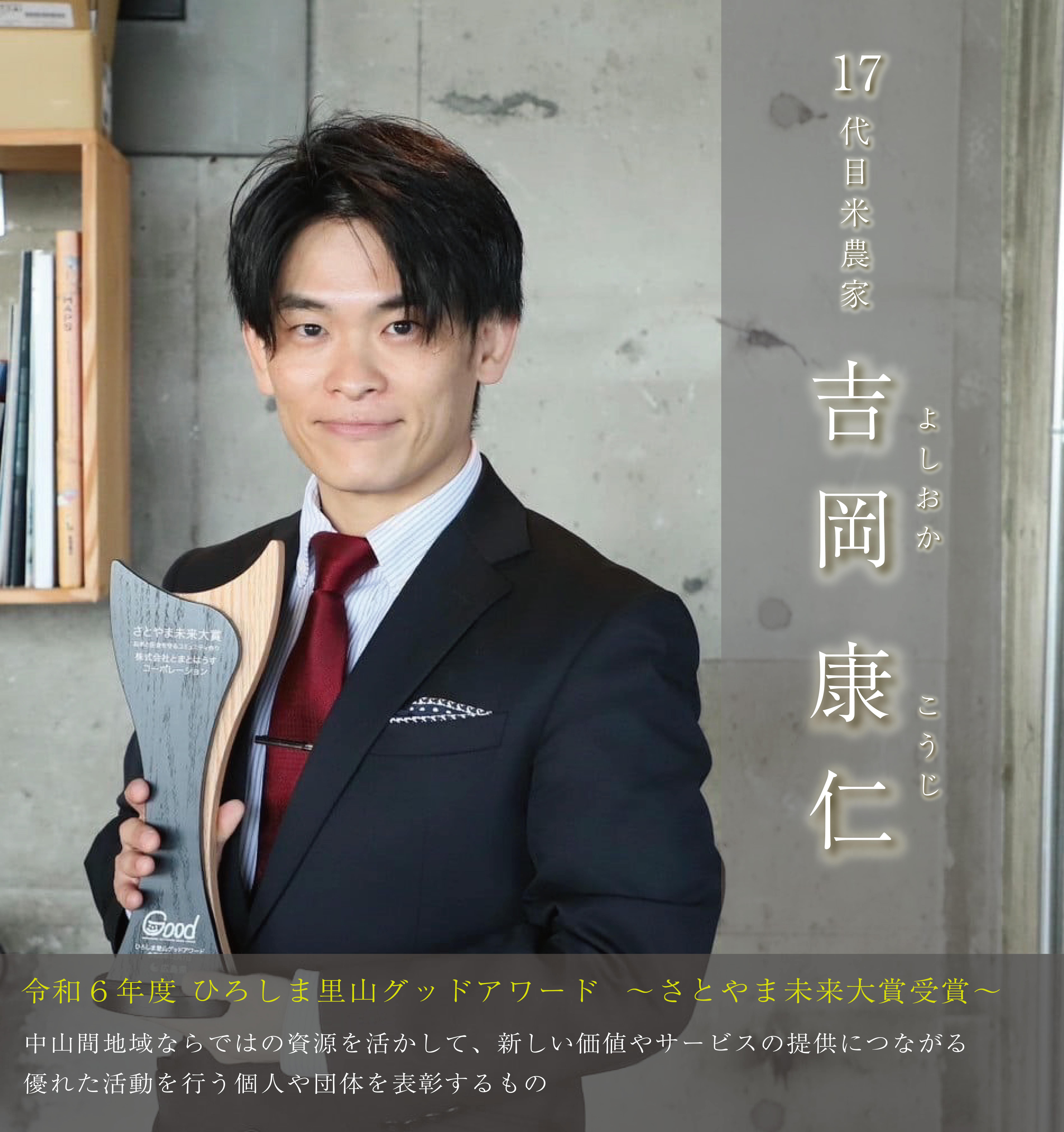 広島県三原市大和町の17代目米農家、コメサンタこと吉岡康仁です。