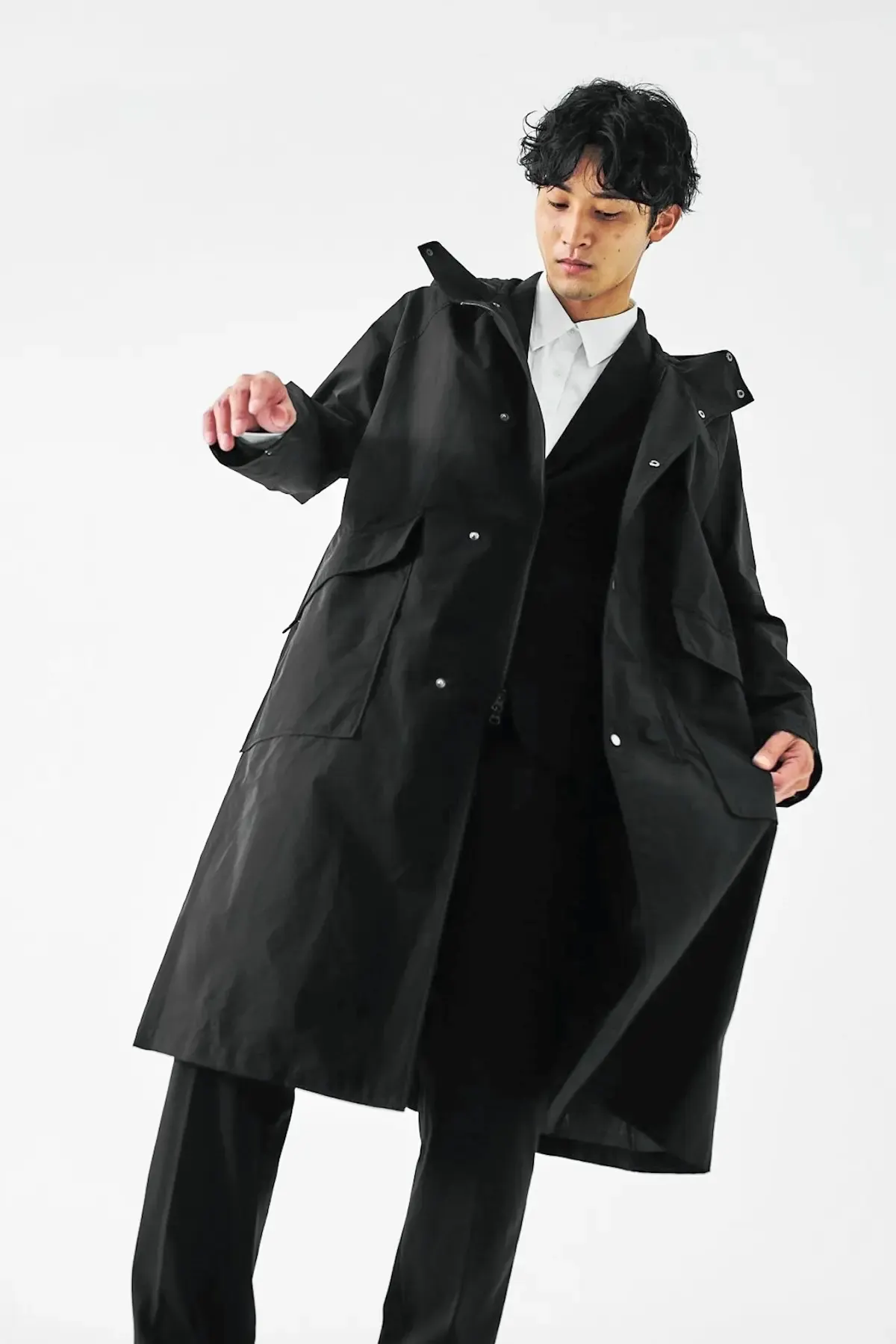 耐水・耐風・透湿で軽い新素材「Botanicaltech® AEROTECT」第二弾の今回のコートでも、前回のファティーグパンツと同様に、ただ機能的であれば良い、という訳ではなく、オシャレにかっこ良くプライベートにも着用できるスタイルとなっています。