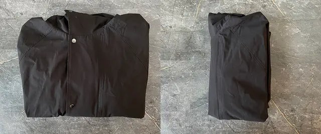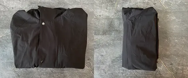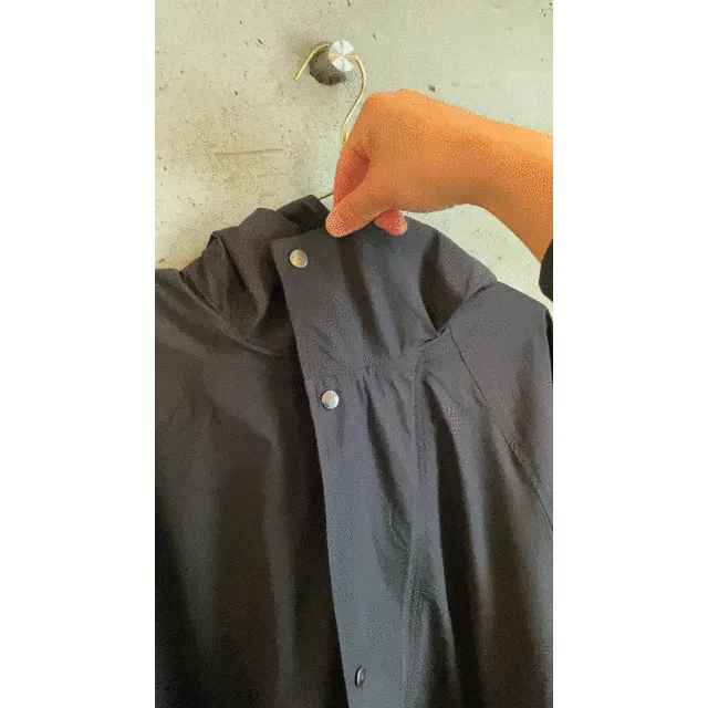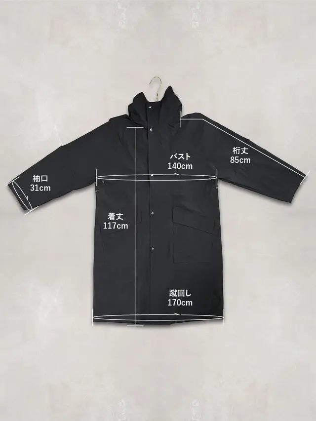 尚、大型の台風が近づく8月にコートを着て体感して実験したところ、傘を差さずとも雨風の侵入を防いでいました。