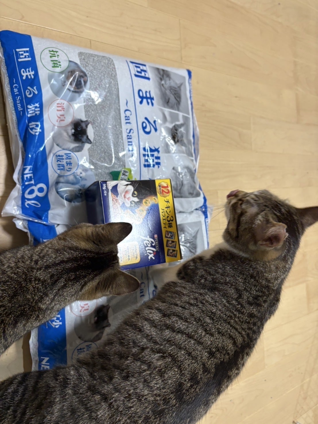 カリカリご飯、パウチご飯、猫砂などの消耗品はすぐになくなってしまうため本当に助かります。