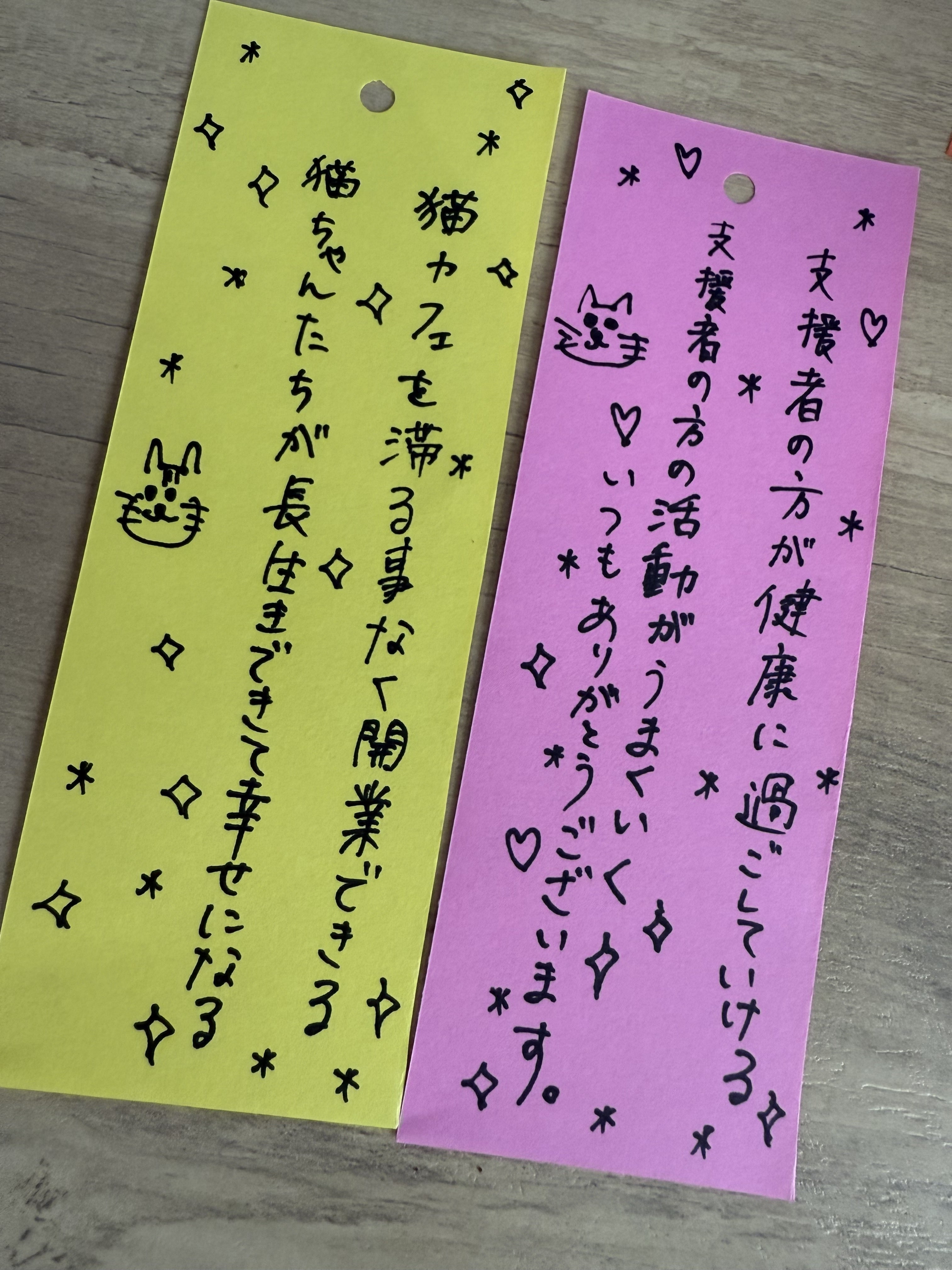 私事ですが5月に出産をしまして、今年の願いは息子くんの健康を願いごとに書きましたが、支援者の方々、猫さんたちの幸せを願って勝手ながら飾らせて頂きましたm(_ _)m